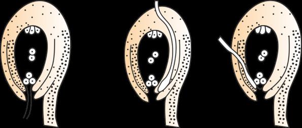 (C) Pollen tube enters into the ovule from the micropylar end.