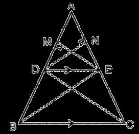 1. If a line is drawn parallel to one side of a triangle to intersect the other two sides in distinct points, the other two sides are divided in the same ratio.