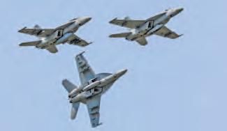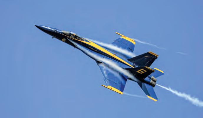 HeadliningtheshowwastheUnited StatesNavy’sBlueAngels.Oceana’s F/A-18SuperHornetsquadronsperformedanimpressivepowerdemonstrationthatincludedattackprofilesandan aerialrefuelingwithtwoSuperHornets. Thehomesquadronsalsoperformeda formationfleetflyby.TheNavy’sF-35C DemonstrationTeamshowedtheOceana crowdthecapabilitiesofthenewestfifthgenerationfighter.