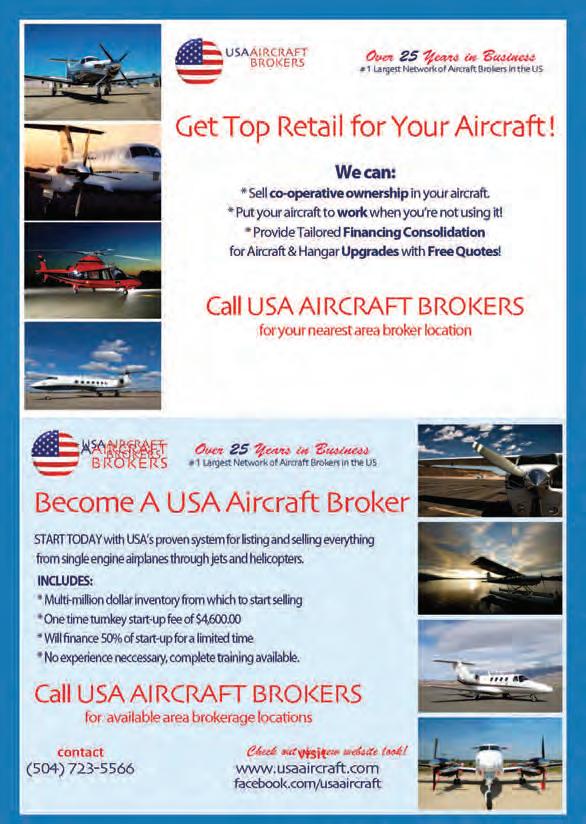 Become an Aircraft Broker — #1Largest USA Network of Aircraft Start with USA’s proved system for listing and selling everything from highperformance single-engine airplanes, cabinclass through jets, and helicopters & jet fractional shares. Includes multi-million-dollar inventory to start.