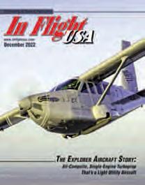 Aswewrapup2022,itisimportanttocapturethestoriesthat havebeenalong-timecomingor inthemaking.Itisimportanttopaytributetothedreamers,thedoers,andall thosewhomakeaviationhappen. ExplorerAircraftisaTexas-basedaircraft manufacturingcompanythathasbeen workingonanewlightutilityaircraftfor severalyears.Theyrecentlywent throughthetest-flightprocessandare gettingreadytomanufactureoneofthe mostinnovativeutilityaircraftever made.ThisistheExplorerstory,aninterviewwithCEO,BryanLynchand DirectorofBusinessDevelopment,Taras Lyssenko.