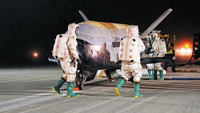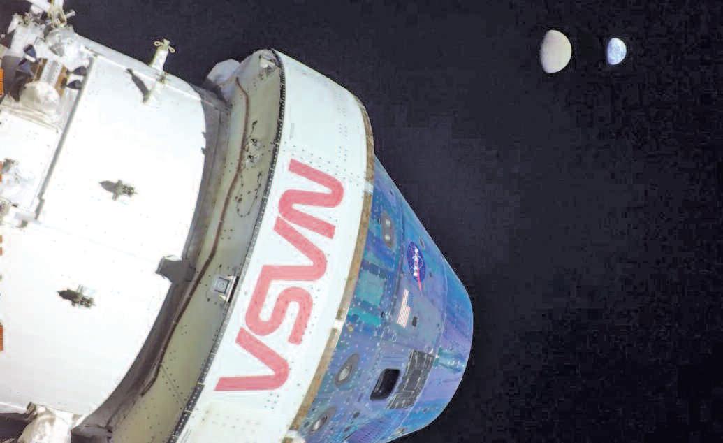 America’sinterplanetaryspaceprogrameffectivelycametoanendwiththe last Apollo missiontotheMoonin December1972.Nospacecraftcapableof carryingastronautsintointerplanetary spacehasbeenlaunchedsincetheflightof Apollo17.TheSLS/Orion havechanged that.Standingsome322-feethigh,the SpaceLaunchSystemlaunchpackage (SLS),theOrionspacecraft,andservice moduleweighinat5.75millionpounds. Producing8.8millionpoundsofthrustat lift-off,thisisthemostpowerfulbooster/crewcapablespaceshipeverlaunched… byanybody.Itgoesfasterthananyformer spacelaunchsystem,(re-entryspeedof 25,000mph)carriesagreaterpayload (59,000pounds)andbymissioncompletion,willhaveflownafully-operational andcrew-capablemodulefurtherfrom Earth(by40,000miles)thananyother launchsystem.Lift-offtookplaceonNov. 11,2022,fora25.5-daymissionthatwill concludeonDec.11,withasplashdown justoffthecoastofSanDiego,havingtraveledmorethan1.3millionmiles.Nodoubt, thisisnotyourgrandfather’s SaturnFive and Apollo Moonmissionsystem.