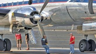 Aftereightyearsofrestoration,the LockheedVC-121AConstellation knownas Bataan returnedtoflightstatus. ThankstothedeeppocketsofLewisAir Legends'founderRodLewisandthe teamofmastercraftsmanwarbirdrestorersatFighterRebuildersatChino Airport,California.