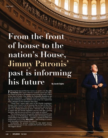 Front cover: Cover captured at the Florida House on Capitol Hill, Florida’s Embassy in Washington, D.C., which has been welcoming Floridians in the nation’s capital city as America’s only State Embassy since 1973. Daniel Diaz-Balart (TSG Advocates), Melissa Cuipers Blake (Brownstein), Omar Franco (Becker), Craig Carbone (Continental Strategy), Elizabeth “Blair” Hancock(Gray Robinson), Dan McFaul (Ballard Partners). Photo: The Workmans