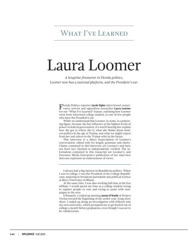 INFLUENCE Magazine is published quarterly by Florida Politics, LLC, a subsidiary of Extensive Enterprises Media, LLC. 204 37th Avenue North, St. Petersburg, Florida 33704. INFLUENCE Magazine and Extensive Enterprises Media are not responsible for unsolicited manuscripts, photography or artwork. Editorial contributions are welcomed and encouraged, but will not be returned. INFLUENCE Magazine reserves the right to publish any letters to the editor. Copyright November 2025, Extensive Enterprises, LLC. All rights reserved. Reproduction in whole or in part without written permission is prohibited.