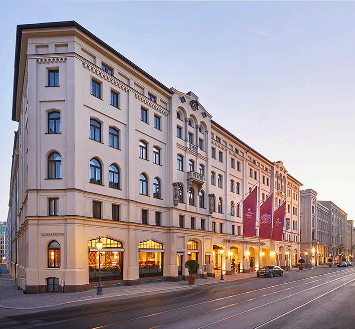 Colin Finnegan in 2019, stands out as a study in fine craftsmanship and artistic expression, inspired by the grand staterooms of the Munich Residence with spectacular views across the rooftops of Munich’s old town. Equally impressive is the Ludwig Suite, one of the most exclusive presidential suites in Europe. Also redesigned by Finnegan, it is a homage to King Ludwig II, the flamboyant “enfant terrible” of the Wittelsbach dynasty and son of King Maximilian II. Spread across 220 square meters, the suite boasts three spacious bedrooms, lavish bathrooms, and elegant living areas, all furnished with custom-made pieces and handcrafted details. Overlooking Maximilianstrasse, the Ludwig Suite balances contemporary luxury with masterful craftsmanship—making it not only a tribute to royal extravagance, but also one of the most desirable retreats in Europe. The collection of restaurants and lounges is crowned by Schwarzreiter Restaurant, where Head Chef Franz-Josef Unterlechner delves into Bavarian culinary heritage, while the iconic Jahreszeiten Bar has captured the glitz and glamour of regal Bavaria since the 1960s.