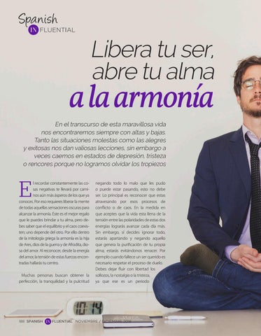 a la armonía En el transcurso de esta maravillosa vida nos encontraremos siempre con altas y bajas. Tanto las situaciones molestas como las alegres y exitosas nos dan valiosas lecciones, sin embargo a veces caemos en estados de depresión, tristeza o rencores porque no logramos olvidar los tropiezos