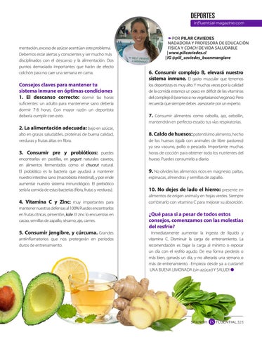 mentación, exceso de azúcar acentúan este problema. Debemos estar alertas y conscientes y ser mucho más disciplinados con el descanso y la alimentación. Dos puntos demasiado importantes que harán de efecto colchón para no caer una semana en cama.
