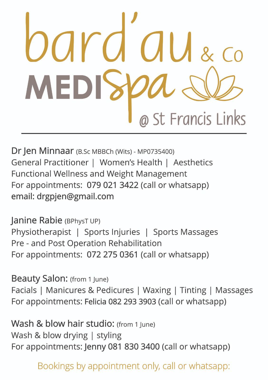 082 409 4411 Contact us for weekly specials Stockist of RegimaA Products Facials Waxing Massages GelNails, Acrylic Nails Pedicures & Manicure Wapp: 082 579 7519