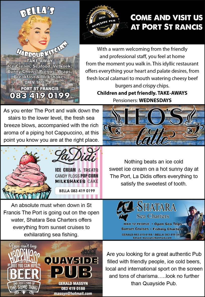 Reproduction or use in whole or in part of the contents of this magazine without written permission is prohibited. St Francis Info Ads makes every effort to ensure the accuracy of content published. Neither the publishers or advertisers will be held responsible for any errors found herein and the publisher accepts no liability for the accuracy of the statements made by advertisers in advertising and promotional materials.