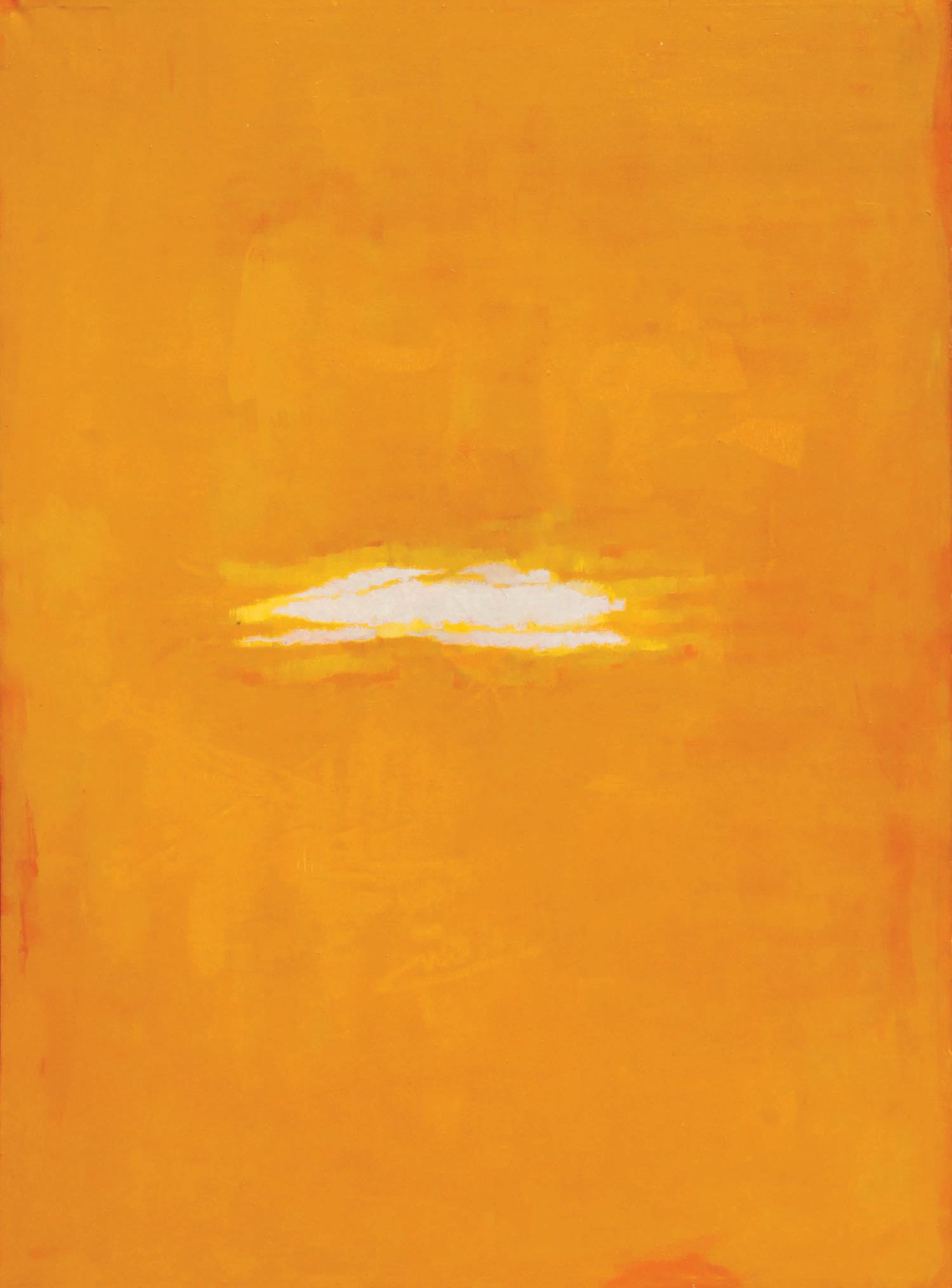 Painted through the careful rendition of a single color, Awakening, 1969 by Norman Lewis, displays his abstract approach and the depiction of dramatic occurrences. It was painted with varying intensities of orange. The orange in the picture gives off an inviting atmosphere at first glance. White paint is applied in layers at the painting’s center, expanding horizontally on top of one another, resembling ocean waves. The brighter oranges, when viewed more extensively over the full painting’s surface, create various geometric forms that are frequently seen in other Lewis’s paintings, signifying human bodies depicting actions and motions.