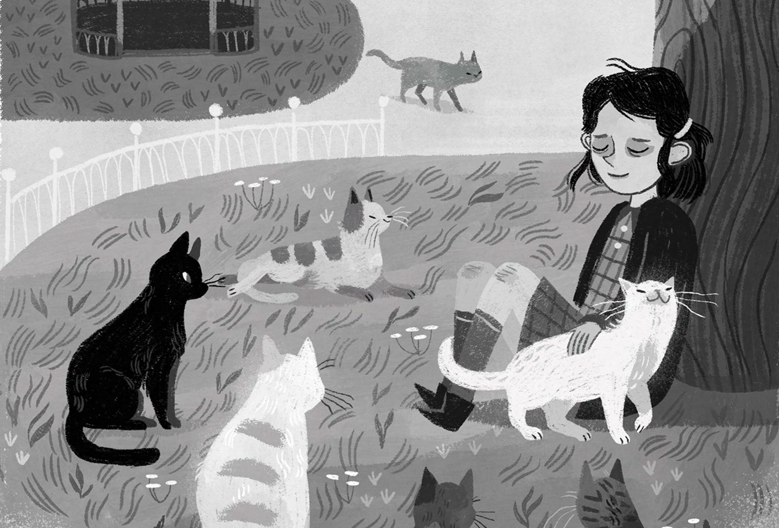 För mig är katten en vägvisare. Läsaren kommer förmodligen främst känna igen sig i människan och hennes ängslighet både för att bli övergiven och att gå vilse. Jag vill förmedla kraften i att våga släppa taget och låta katten bestämma, se vad som händer, och att vara öppen för förundran.