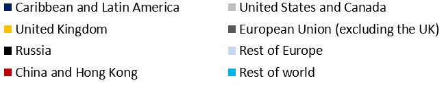Third, we applied the relevant marginal impact to the total stock of investment mediated by BVI Business Companies by location of underlying asset from our survey. We use our estimates of the marginal impact of an extra US$1 million in the United States for North America (0.91), the United Kingdom for the United Kingdom (0.88), the Euro area for the rest of Europe (0.87), Mexico for Latin America and the Caribbean (2.87) and China for Hong Kong and China (2.51). For the rest of the world we use a marginal impact of three jobs per US$1 million of investment.