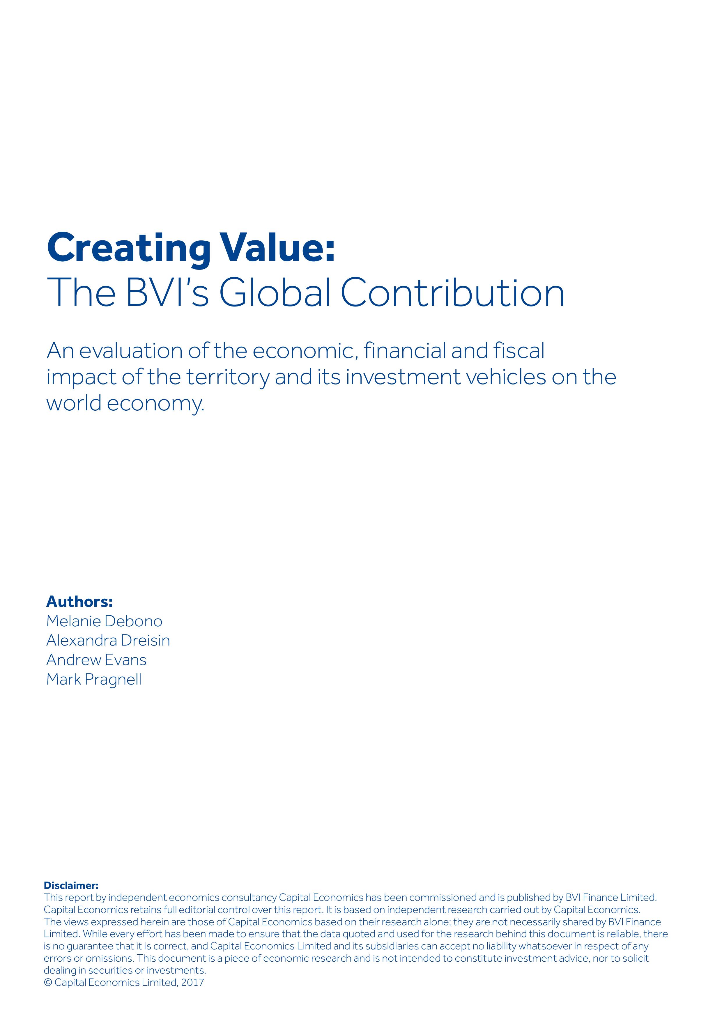 Capital Economics has been commissioned by BVI Finance Limited to research and report upon the contribution made by the British Virgin Islands to the global economy.