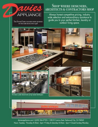 daviesappliance.com • (650) 366-5728 • 1580 El Camino Real, Redwood City, CA 94063 Hours: Tuesday - Thursday 8:30am - 6pm • Friday & Saturday 8:30am - 5pm • Closed Sunday/Monday