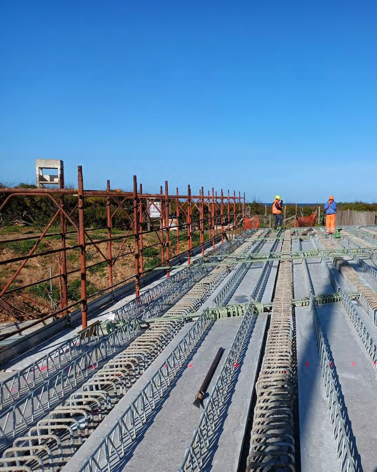 cato attraverso uno studio del ciclo di vita dei prodotti cradle to gate. Tra i “sostegni sostenibili”, va rimarcato il calcestruzzo green ad economia circolare per pali in c.a.c. (cemento armato centrifugato) di S.I.P.A. In sinergia con la strategia di sviluppo sostenibile della committenza, è stato portato a termine un progetto R&S per la realizzazione di pali in c.a.c. per linee elettriche aeree MT-BT, grazie alla partnership con Tesis S.r.l., uno spin-off accademico dell’Università di Salerno. L’obiettivo è stato di impiegare inerti recuperati dalla demolizione di pali analoghi dismessi, mettendo a punto diverse miscele sperimentali e realizzando calcestruzzo con aggregati riciclati per il 20, 50 e 100% della quantità totale prevista. I prototipi così otte-