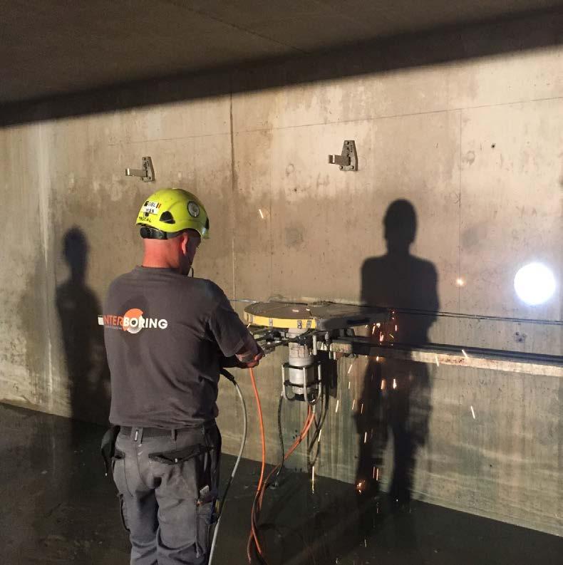del 1962. Questo primo reattore ad acqua pressurizzata (PWR) in Europa servì, tra l’altro, a formare il personale delle future centrali di Doel e Tihange. Dal 1963 in poi, fu anche usato per testare il combustibile MOX (Miscela di Ossidi di Uranio e Plutonio) in condizioni reali, e nel 1987 è stato definitivamente spento dopo 11 cicli di funzionamento. Da allora, fu designato come impianto pilota per la ricerca sullo smantellamento dei reattori da parte della Commissione Europea. Una di queste conferenze, in particolare, ha affrontato il tema del taglio a secco dei muri di contenimento in calcestruzzo del Bioshield (lo scudo biologico attorno al reattore, a protezione della popolazione e dell’ambiente dalle radiazioni ionizzanti prodotte nel cuore del reattore dalla fissione nucleare), con una tecnica avanzata di taglio e perforazione con filo diamantato. I reattori nucleari sono dotati di sistemi di sicurezza diversi e ridondanti, che si rafforzano reciprocamente. Il processo di taglio deve essere eseguito, quindi, con grande precisione, tenendo conto delle rigorose condizioni di sicurezza che vanno adottate per il personale, le attrezzature impiegate e il complesso contesto circostante. Questo muro perimetrale in calcestruzzo, con uno spessore variabile da 80 cm a 120 cm, è stato tagliato utilizzando un impianto mobile a cavo diamantato. Le operazioni di sezionamento hanno prodotto dei blocchi modulari di circa 10 tonnellate l’uno, dimensionati in modo da poter essere movimentati successivamente per un’ulteriore riduzione volumetrica degli elementi e un conferimento differenziato dei materiali da smaltire. L’intero processo di demolizione controllata è stato realizzato a secco, con particolare attenzione al controllo e alla raccolta della polvere di calcestruzzo rilasciata durante il taglio. Le tre fasi successive di intervento hanno compreso dapprima le lavorazioni di trivellazione diamantata, in secondo luogo il taglio con cavo e infine la perforazione con utensile Widia. In ogni fase di cantiere, le squadre di Interboring si sono avvalse di un sofisticato modulo di sollevamento per il lavoro in