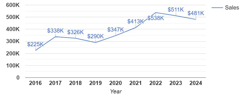 AverageSalePricebyYear:01/01/2016-07/16/2024
