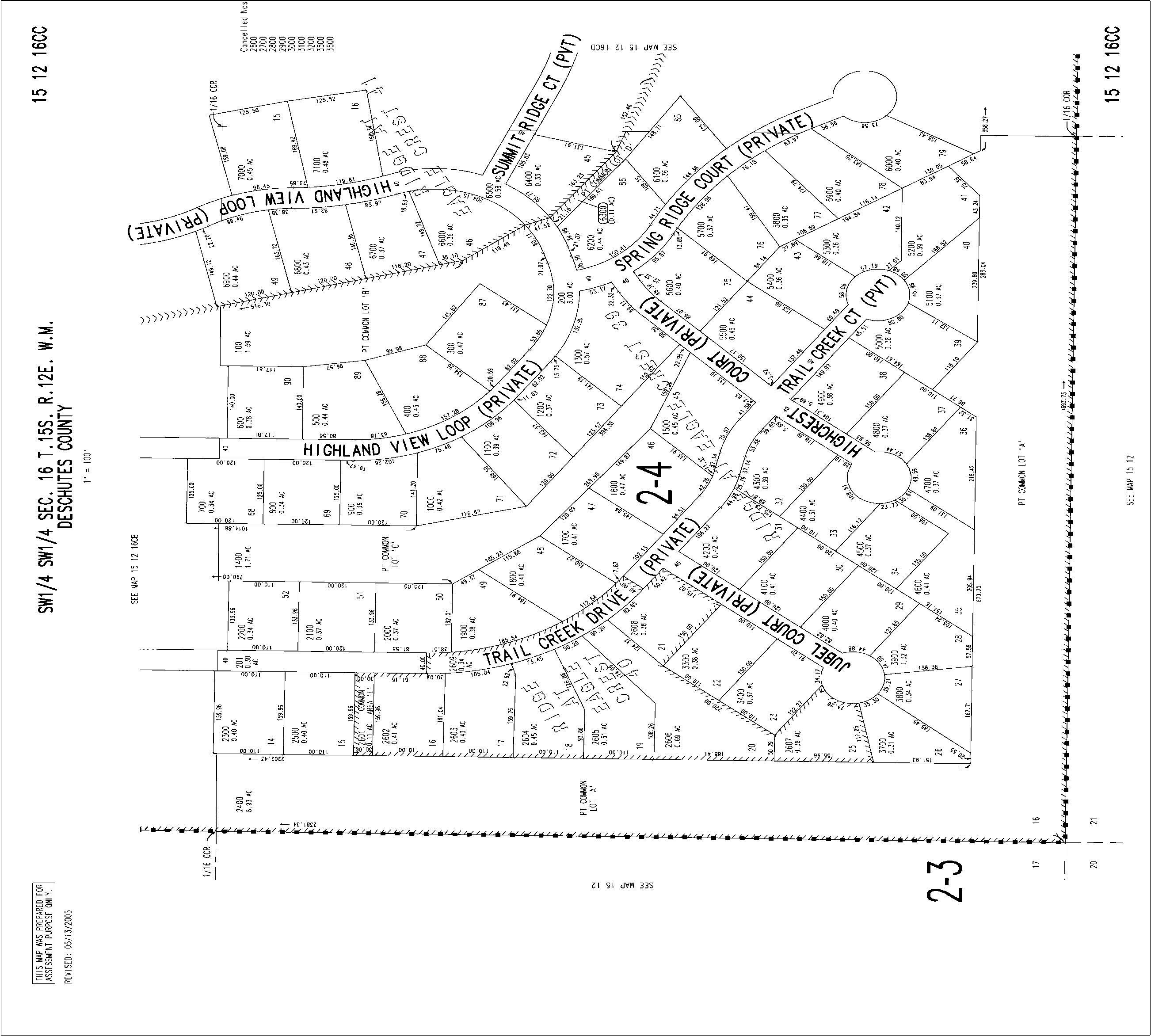 Review of digital records maintained by the Deschutes County Assessor’s Office, Tax Office, Finance Office, and the Community Development Department indicates that there are no special tax, assessment or property development related notations associated with this account. However, independent verification of the presence of other Deschutes County tax, assessment, development, and additional property related considerations is recommended. Confirmation is commonly provided by title companies, real estate agents, developers, engineering and surveying firms, and other parties who are involved in property transactions or property development. In addition, County departments may be contacted directly to discuss the information.