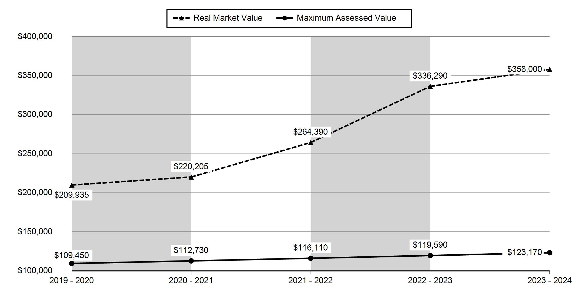 Prices in this zip code seem to have settled around a plateau. Look for a persistent down-shift in the Market Action Index before we see prices deviate from these levels.