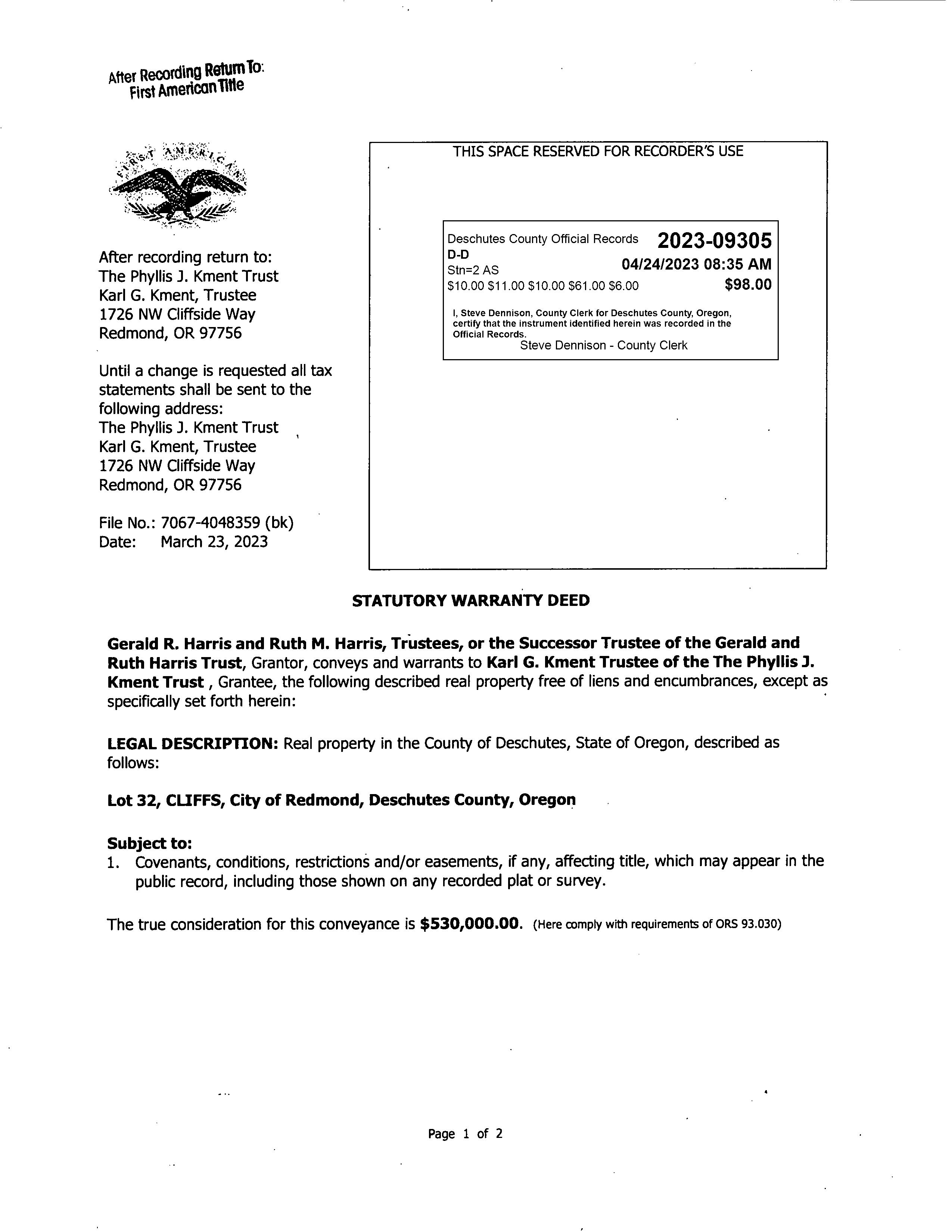 PREPAREDBY DanettaRider danettar@deschutestitle.com