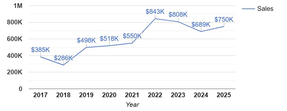 Sale Price by Year: 01/01/2017 - 12/02/2025