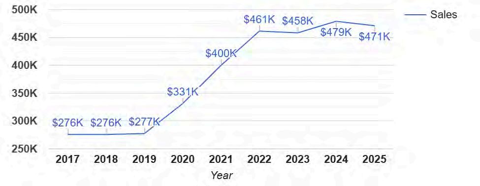 Sale Price byYear: 01/01/2017 - 11/12/2025