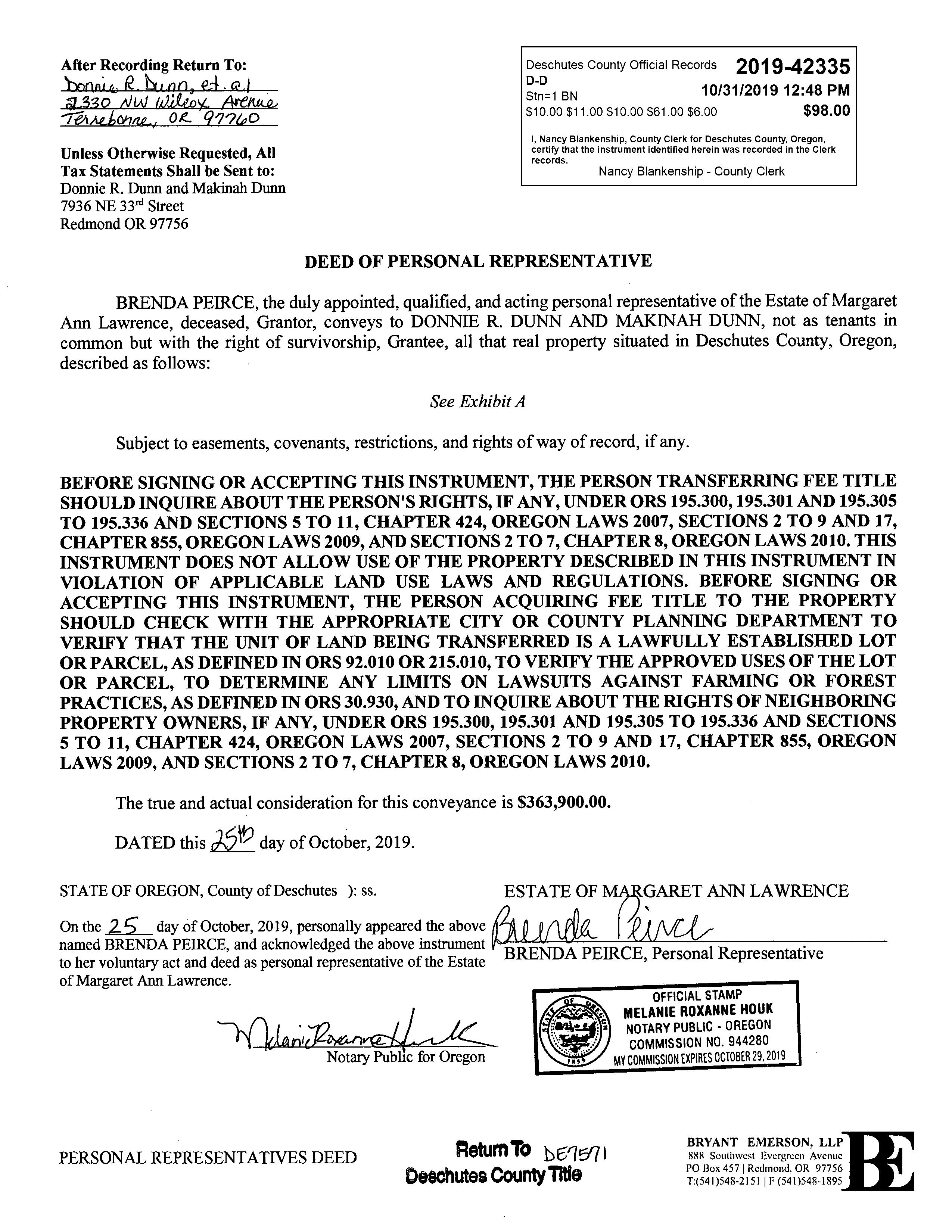 PREPARED BY Christie Smith christies@deschutestitle.com