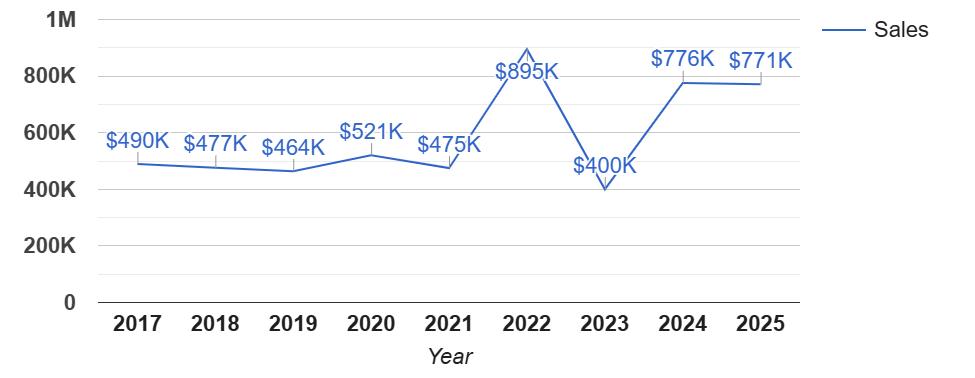 Average Sale Price by Year: 01/01/2017 - 12/04/2025