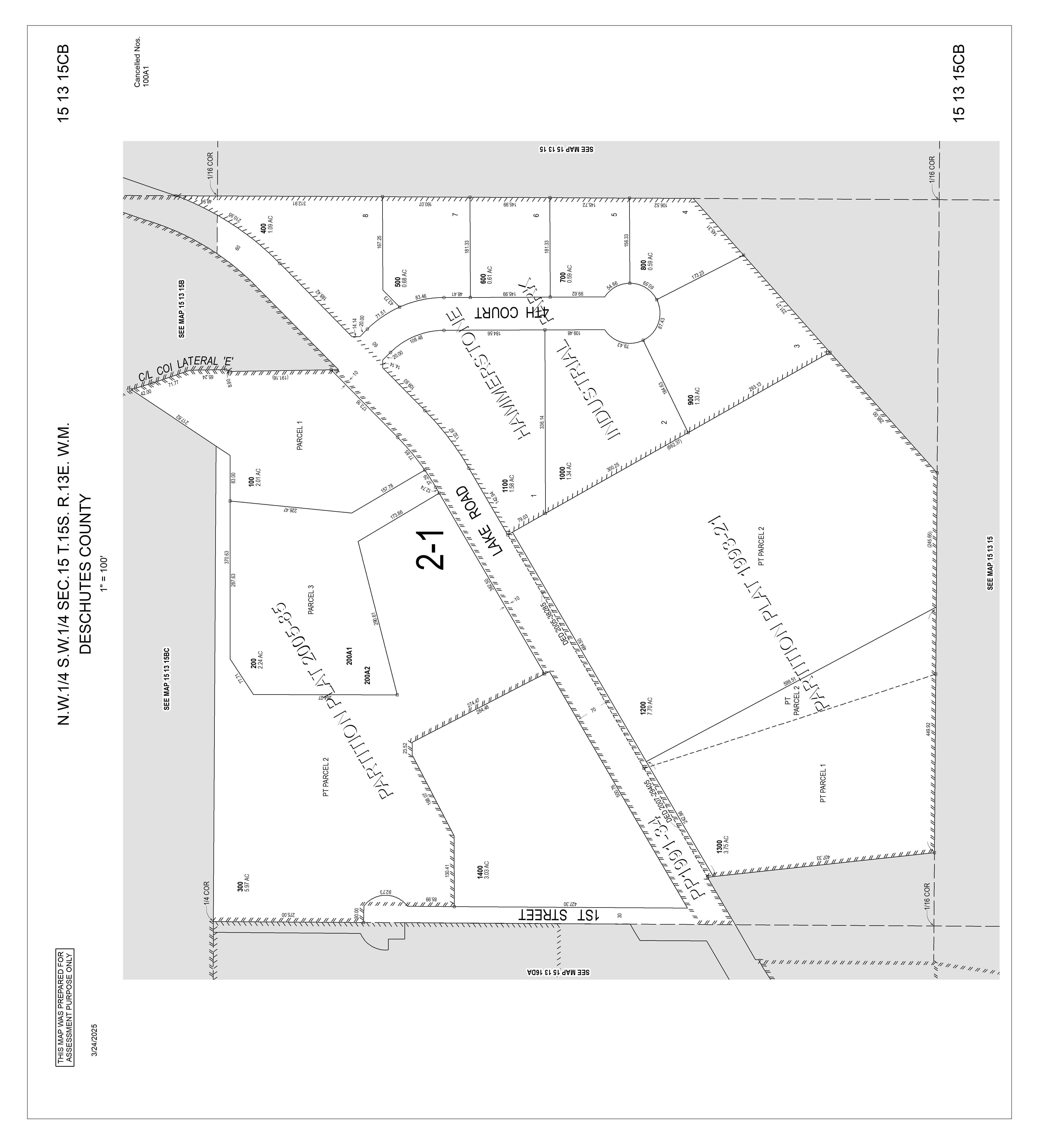 Review of digital records maintained by the Deschutes County Assessor’s Office, Tax Office, Finance Office, and the Community Development Department indicates that there are no special tax, assessment or property development related notations associated with this account. However, independent verification of the presence of other Deschutes County tax, assessment, development, and additional property related considerations is recommended. Confirmation is commonly provided by title companies, real estate agents, developers, engineering and surveying firms, and other parties who are involved in property transactions or property development. In addition, County departments may be contacted directly to discuss the information.