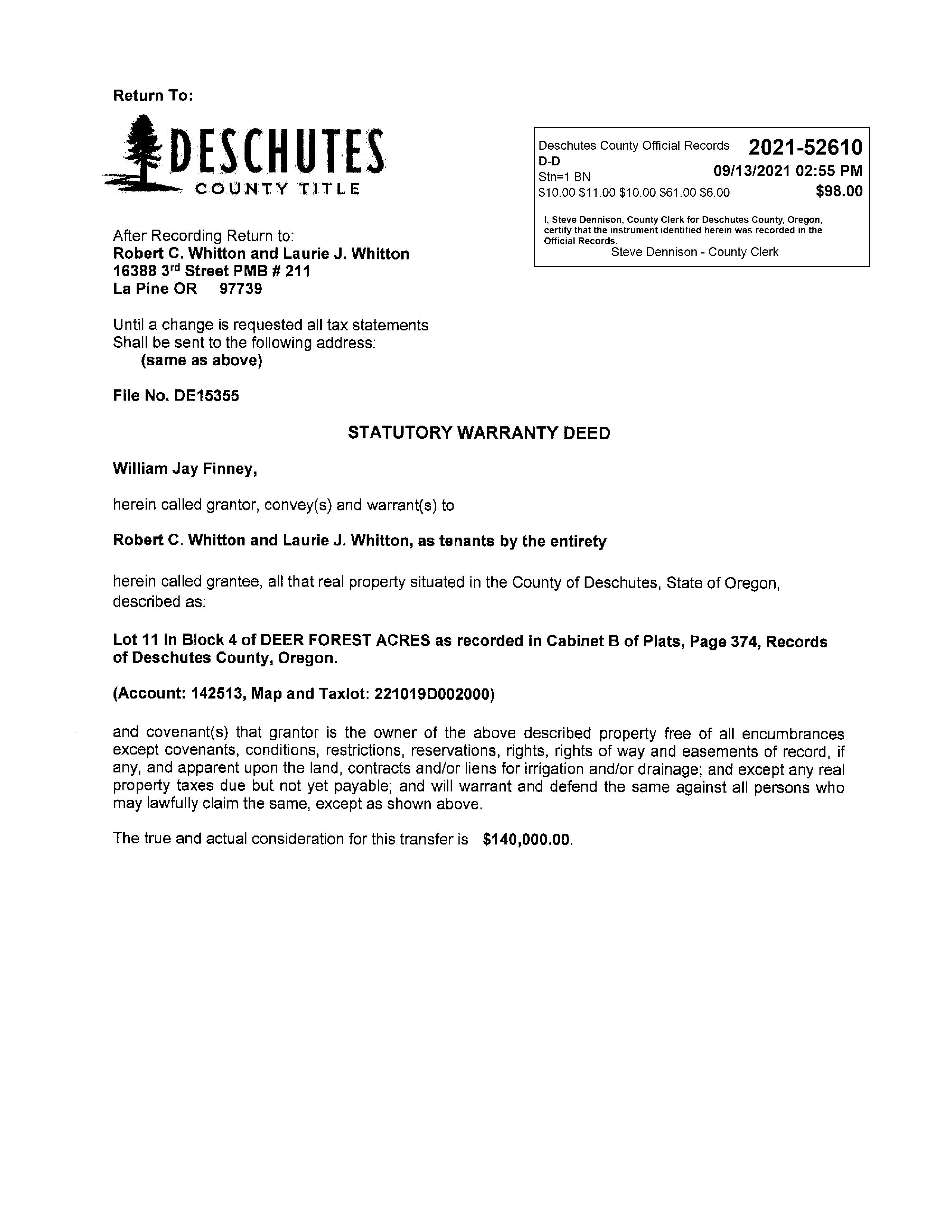 PREPAREDBY DanettaRider danettar@deschutestitle.com