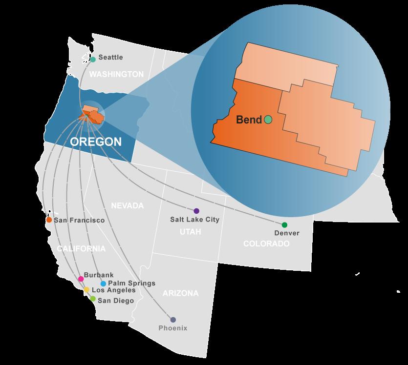 Access to and from our region has never been easier with five national carriers flying up to 54 segments daily to nine international airports. Central Oregon is served by one of the most vibrant and successful regional airports in the country at Redmond (RDM).