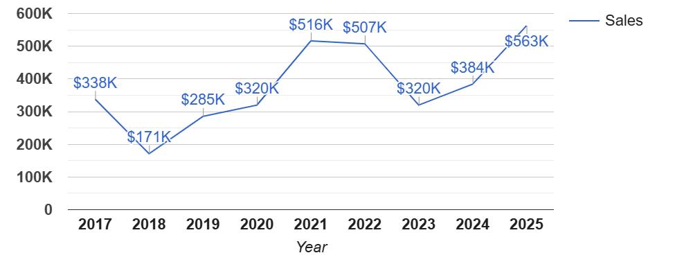 Sales Statistics by Year: 01/01/2017 - 11/13/2025
