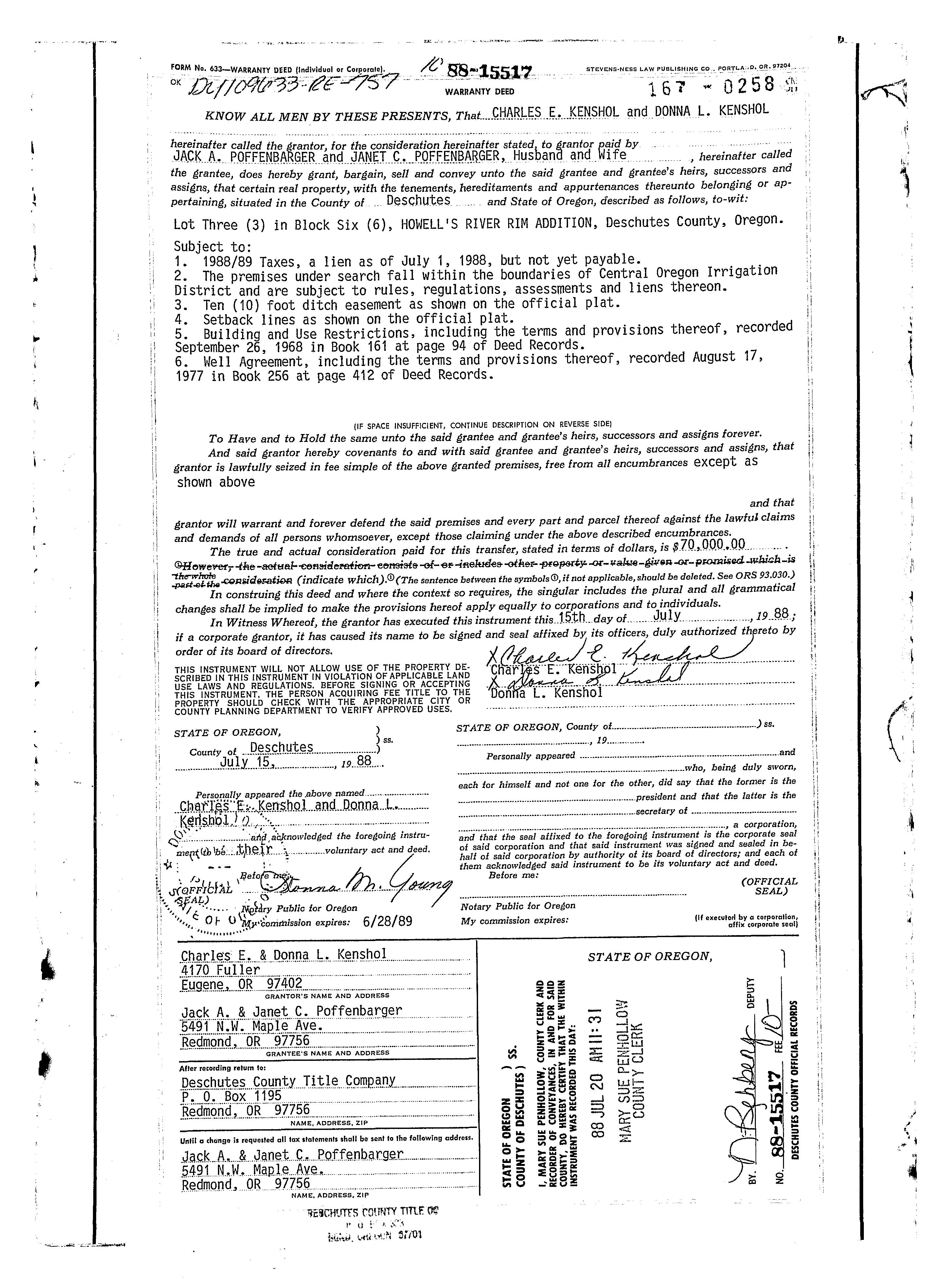 Legal:HOWELL'SRIVERRIMLot:3Block:6 Twn/Rng/Sec:T:15SR:12ES:01Q:SEQQ: