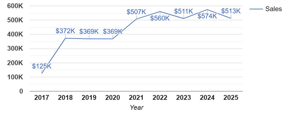 AverageSalePricebyYear: 01/01/2017-12/15/2025