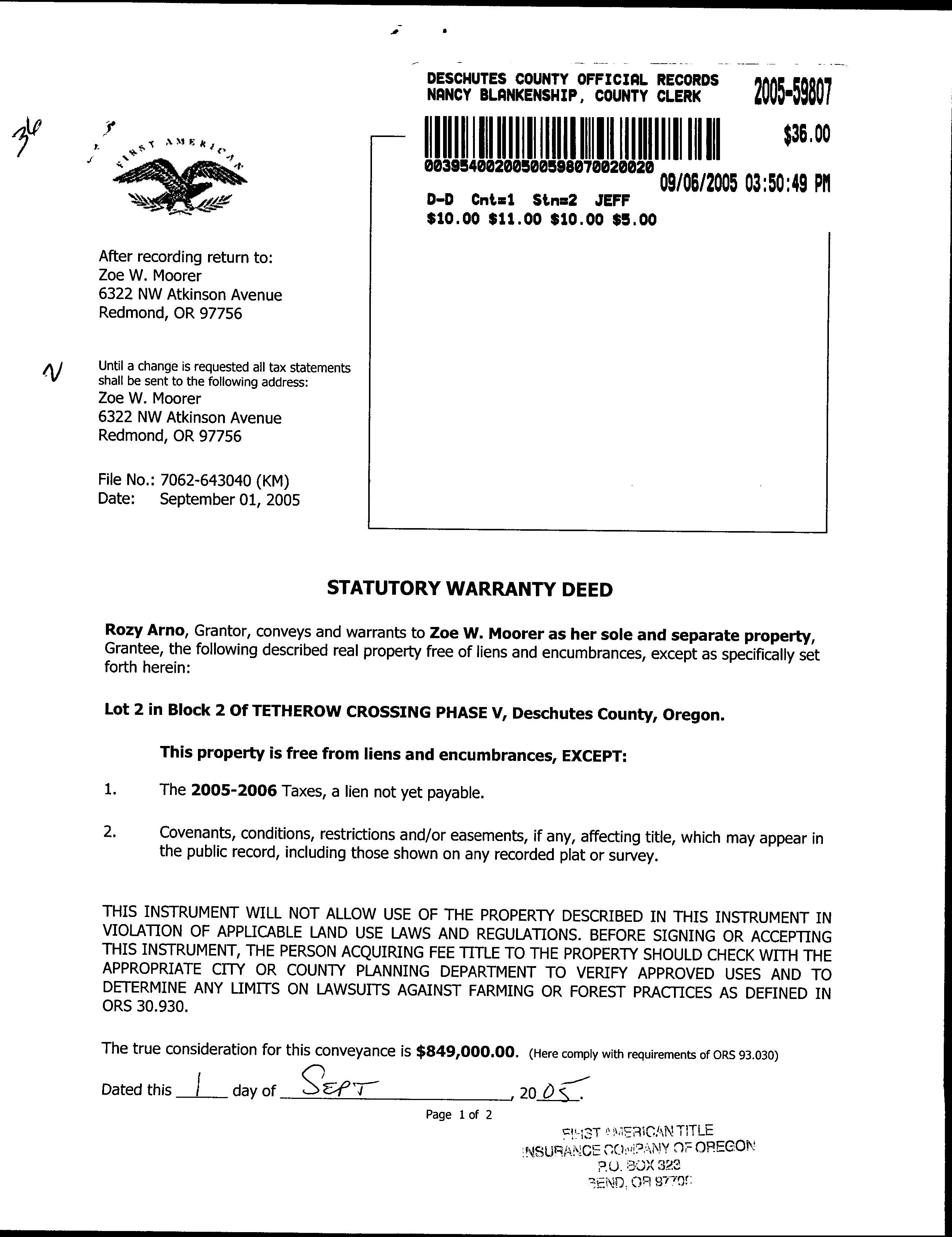 PREPAREDBY DanettaRider danettar@deschutestitle.com