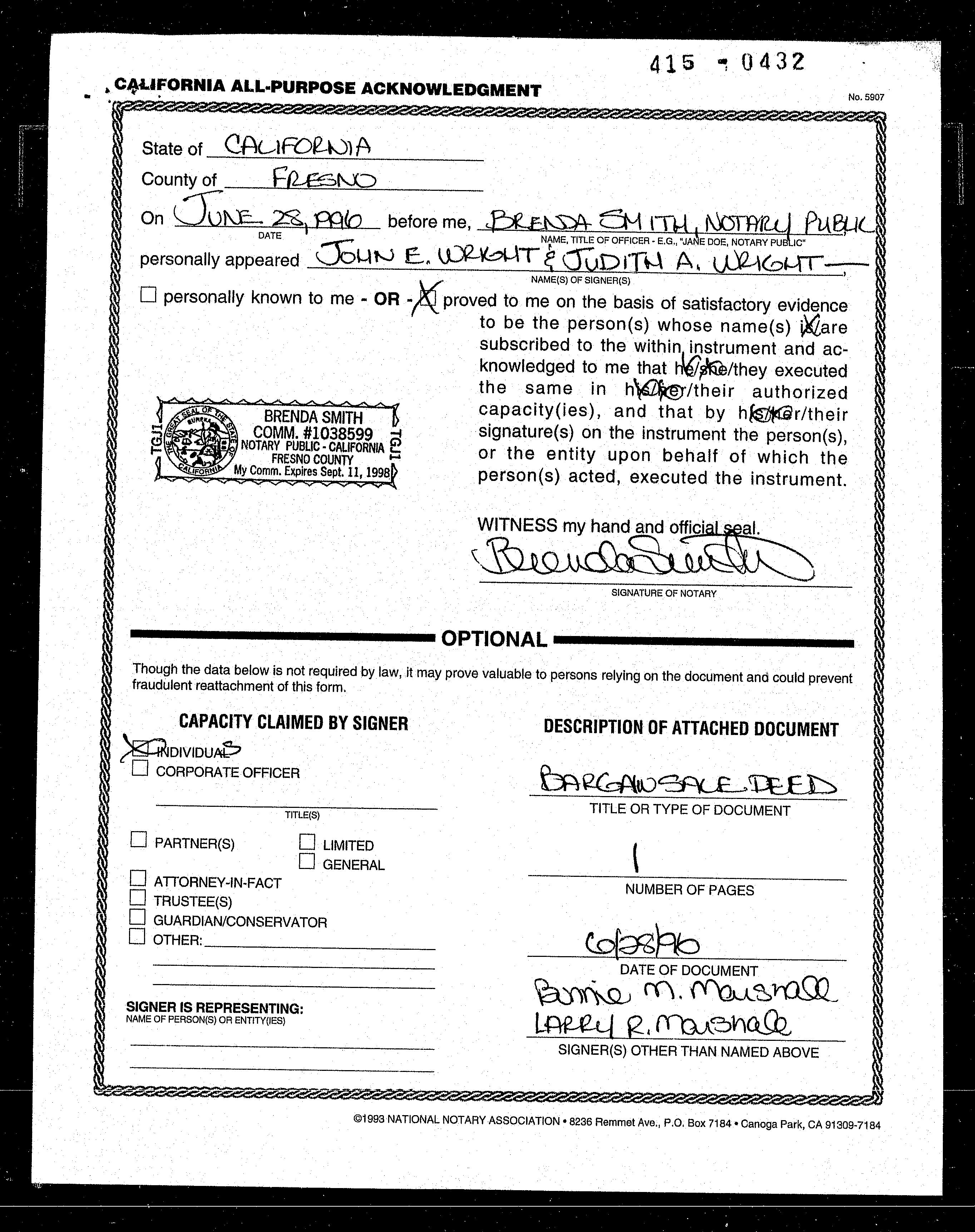 OWNER Marshall, Larry R Marshall, Bonnie M