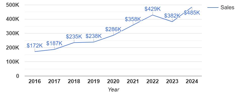 AverageSalePricebyYear:01/01/2016-07/11/2024