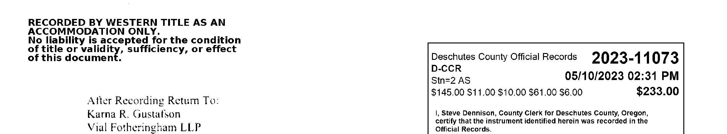 Omitted from the attached document is any covenant or restriction that is based upon, but not necessarily limited to, race, color, religion, sex, sexual orientation, familial status, marital status, disability, handicap, national origin, ancestry, source of income, gender, gender identity, gender expression, medical condition or genetic information, as set forth in applicable state or federal law, except to the extent that such covenant or restriction is permitted by applicable law. Oregon Version 20150707