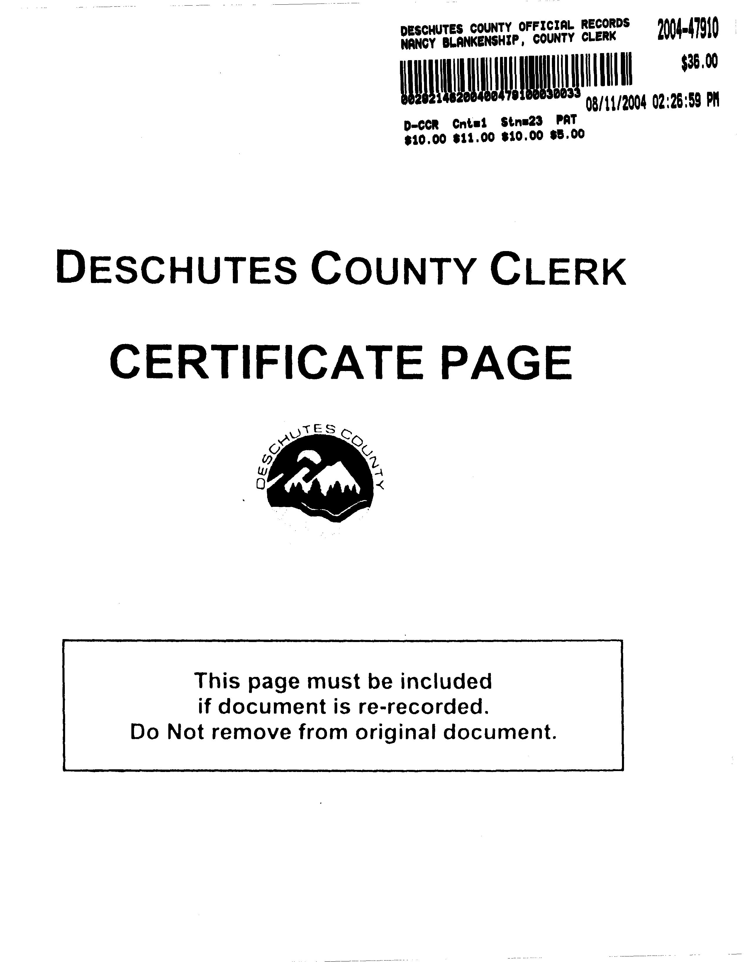 DESCHUTES COUNTY SURVEYOR PAGE PER AFFIDAVIT OF MONUMENTATION DESCHUTES COUNTY RECORDS. DATE