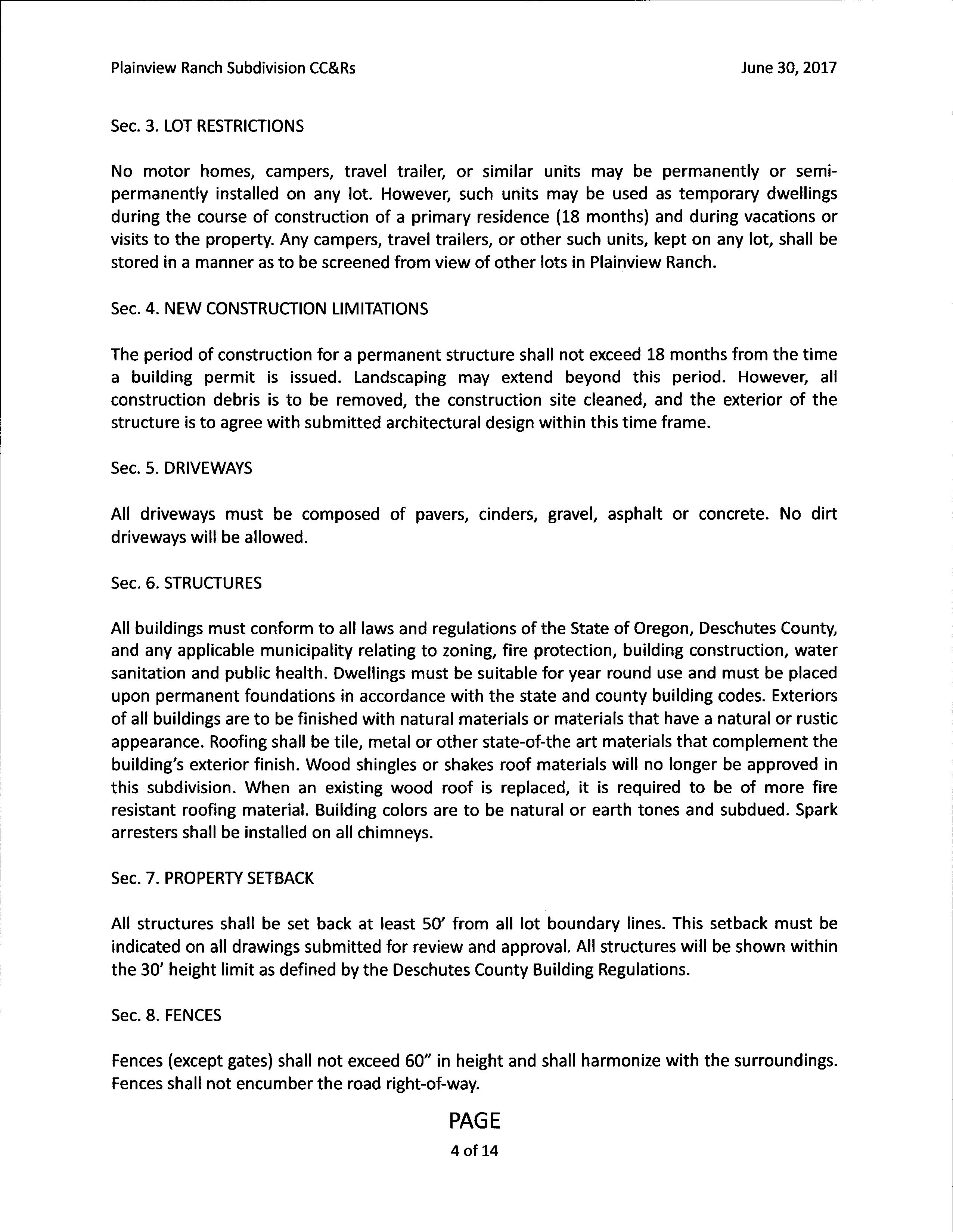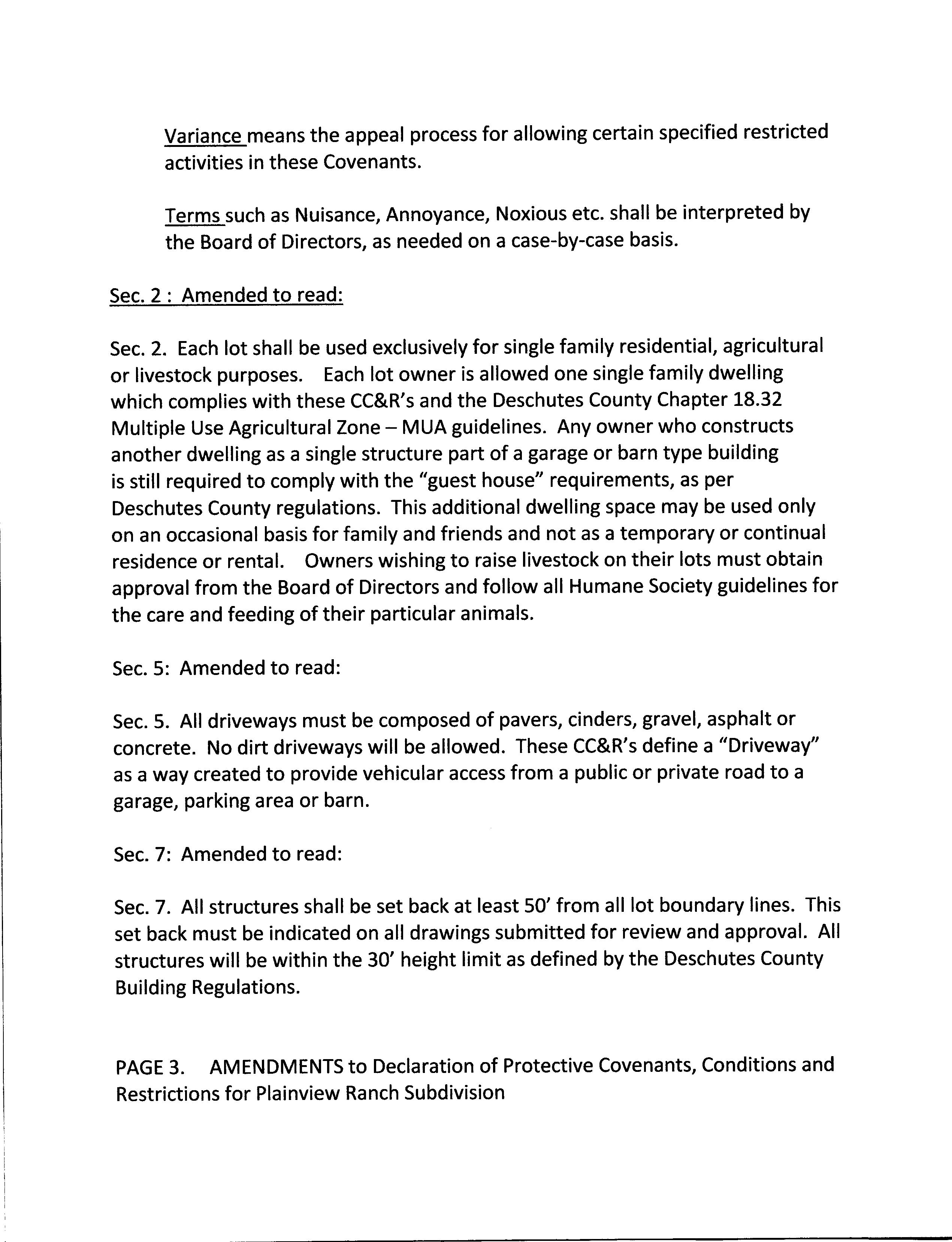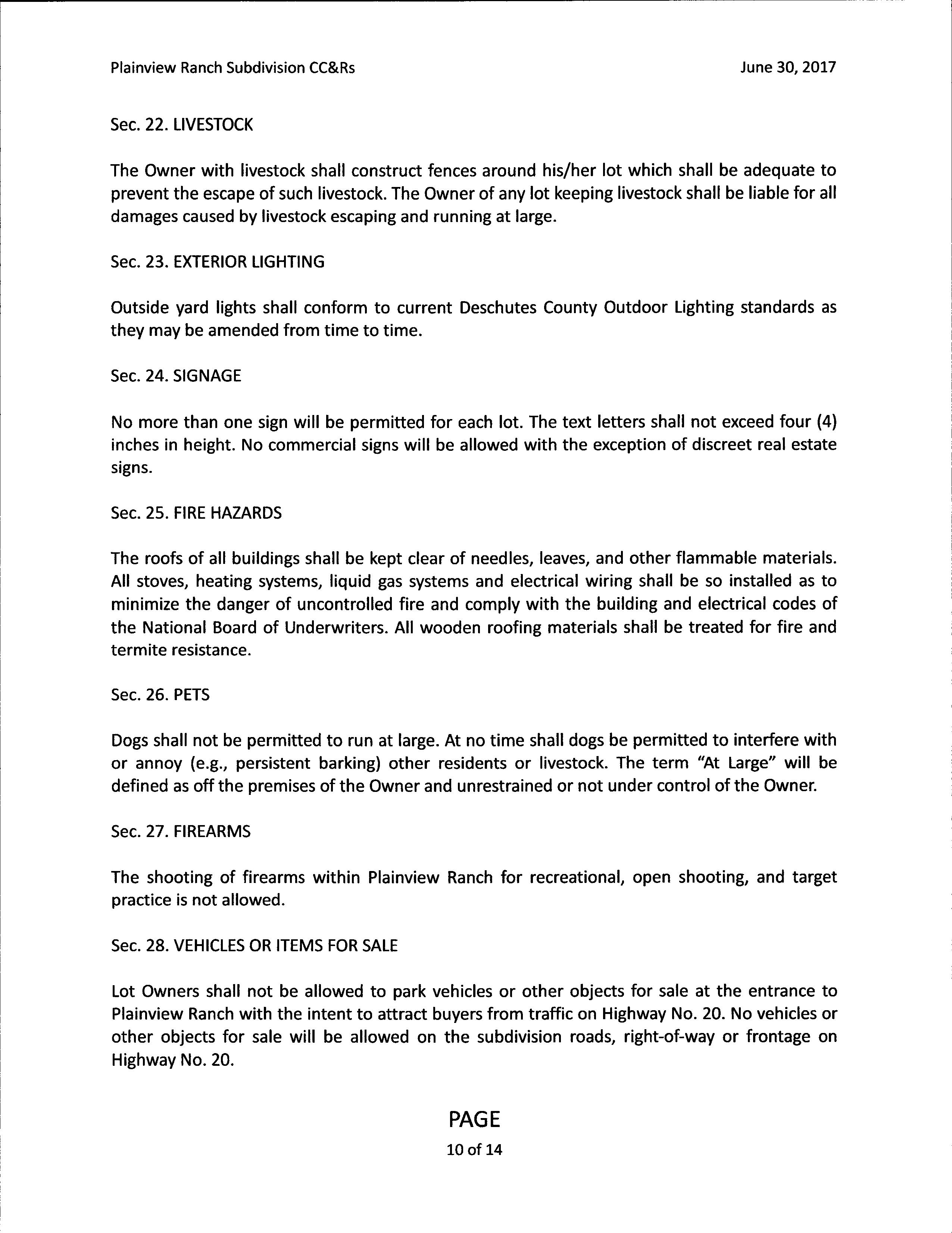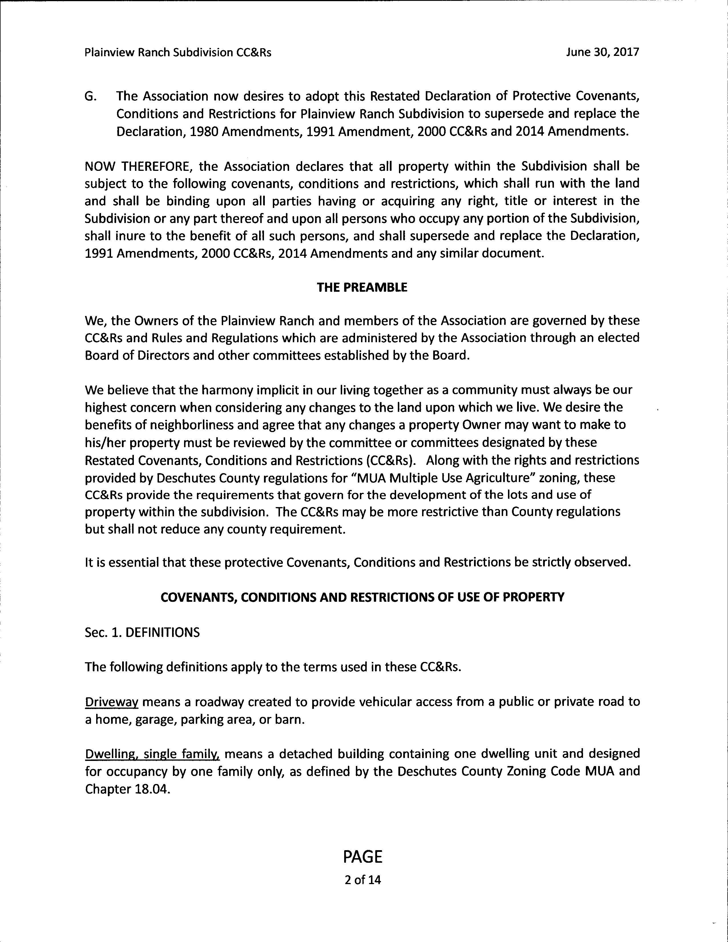 Plainview Ranch CCR's