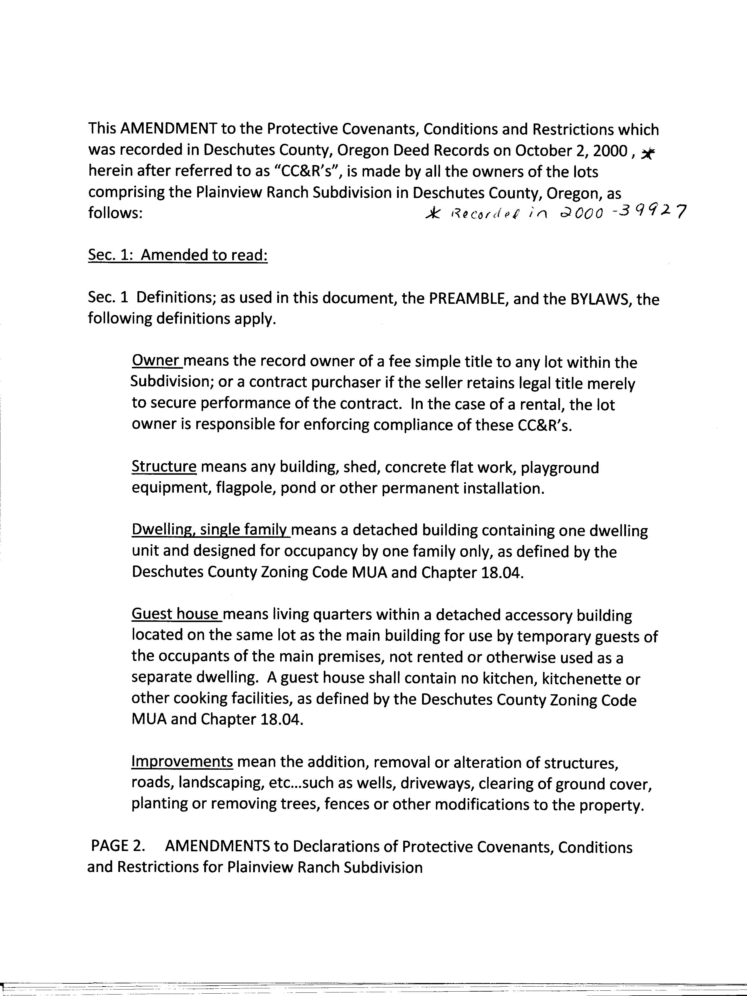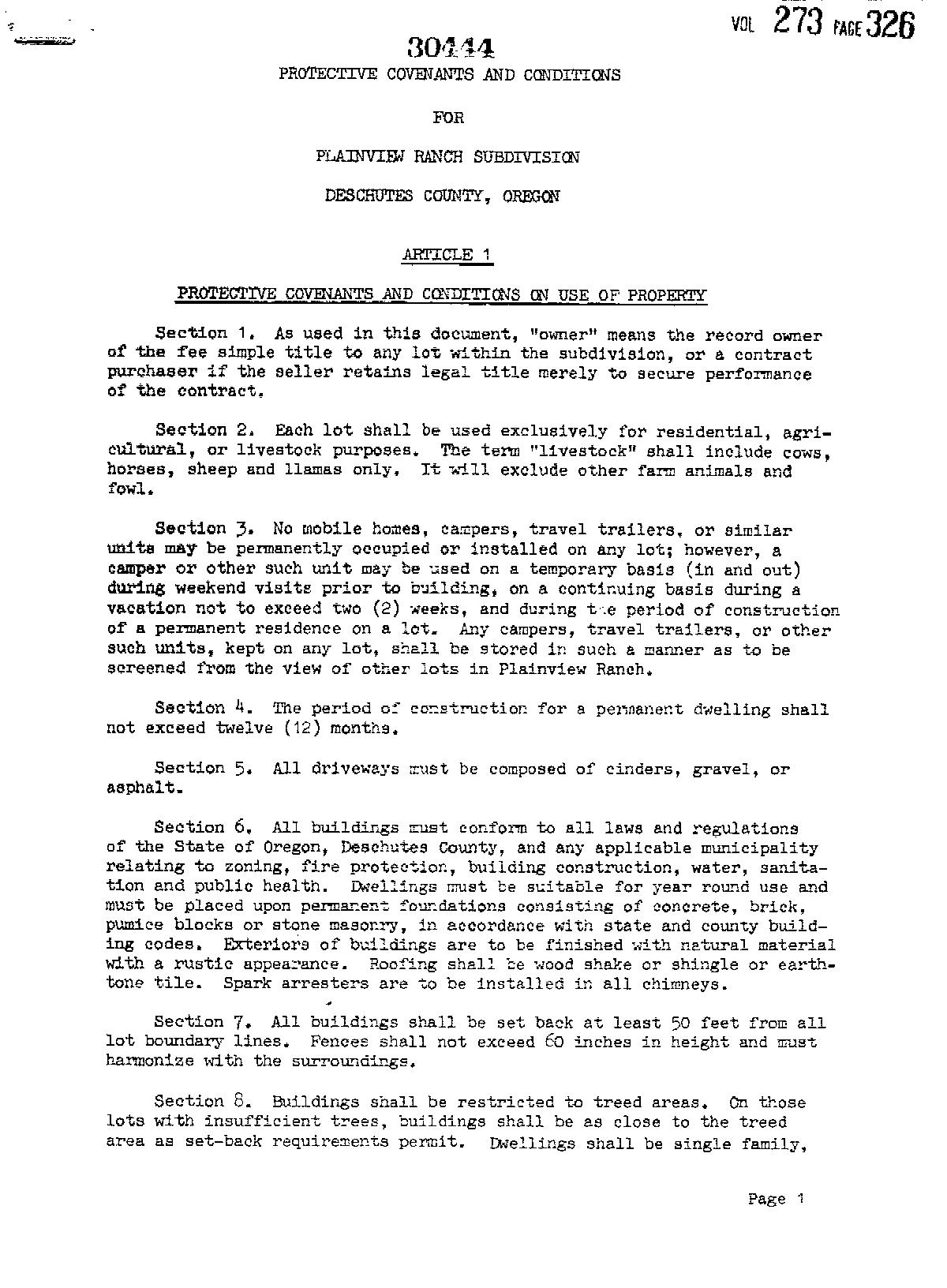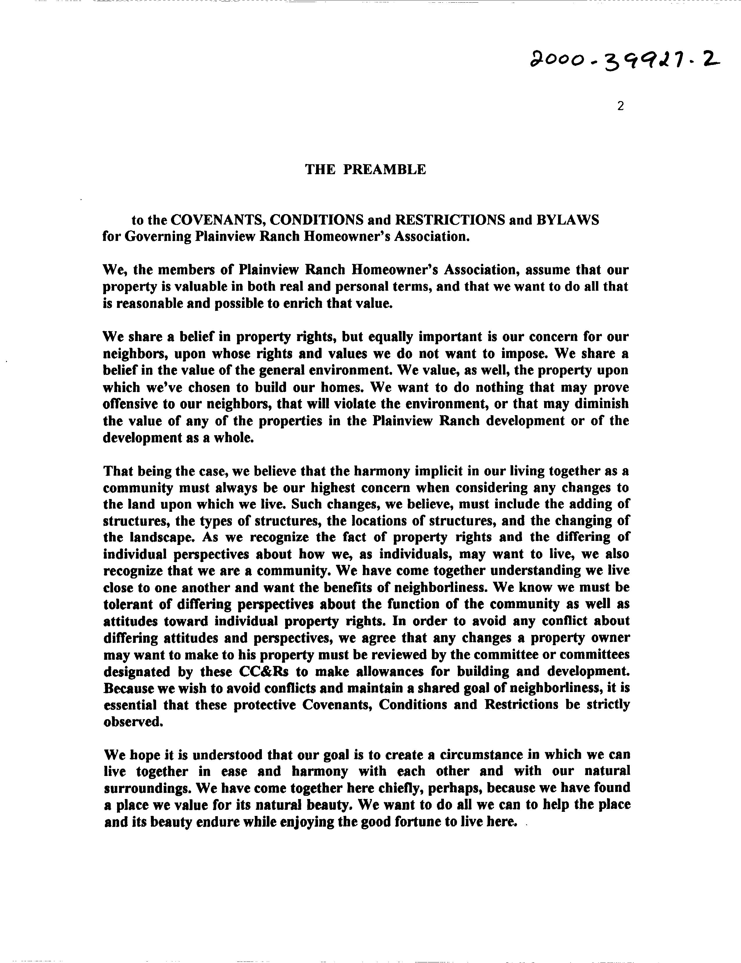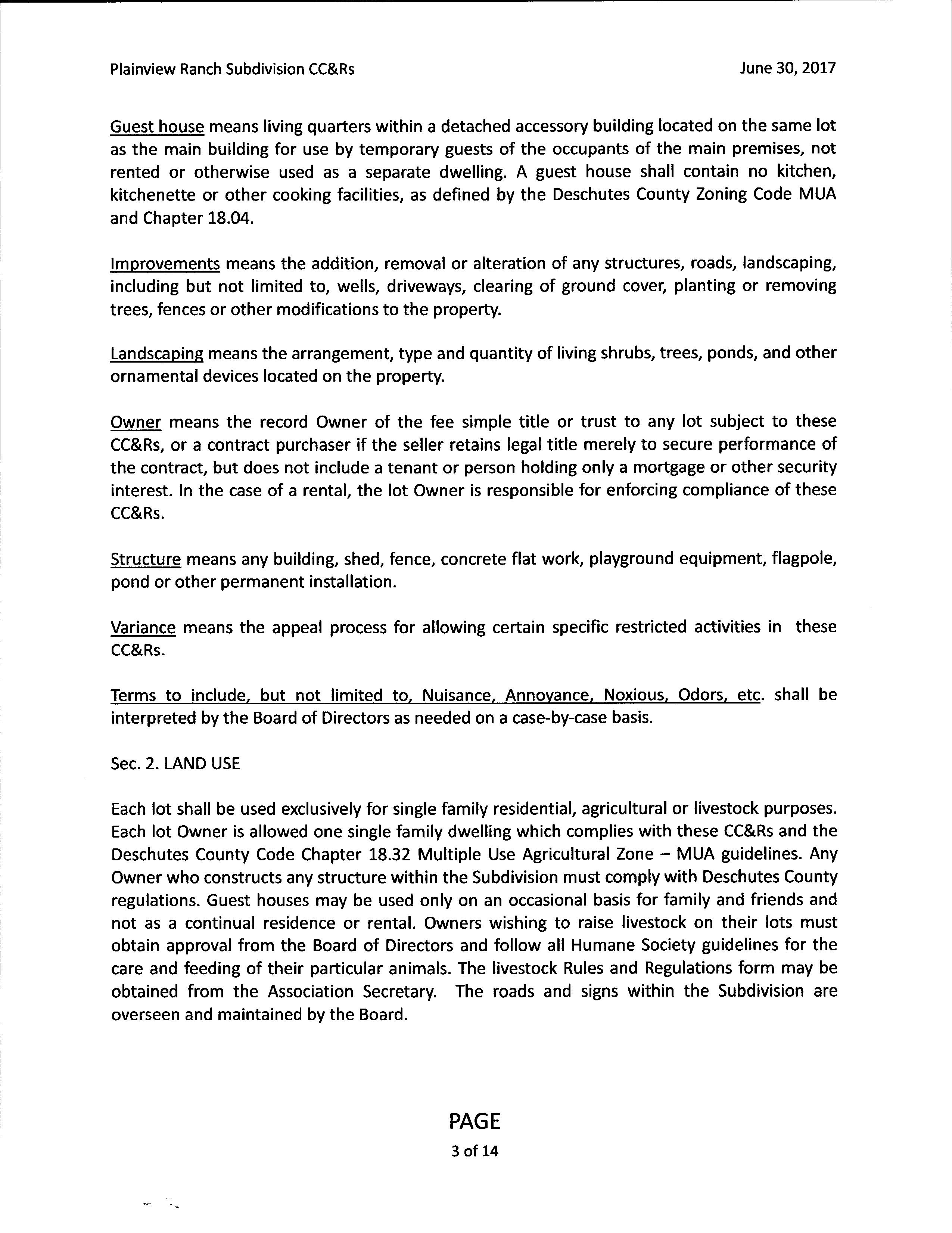Plainview Ranch CCR's
