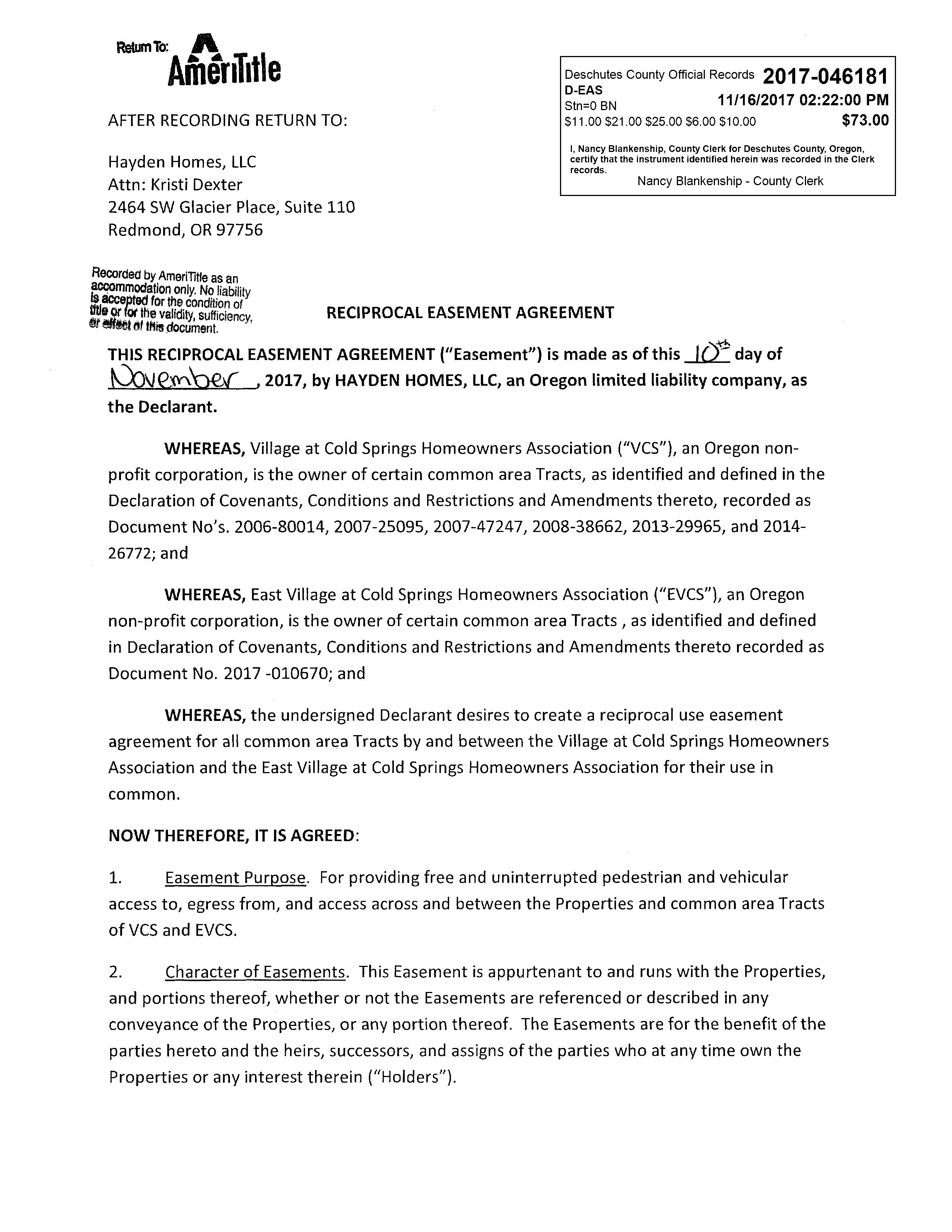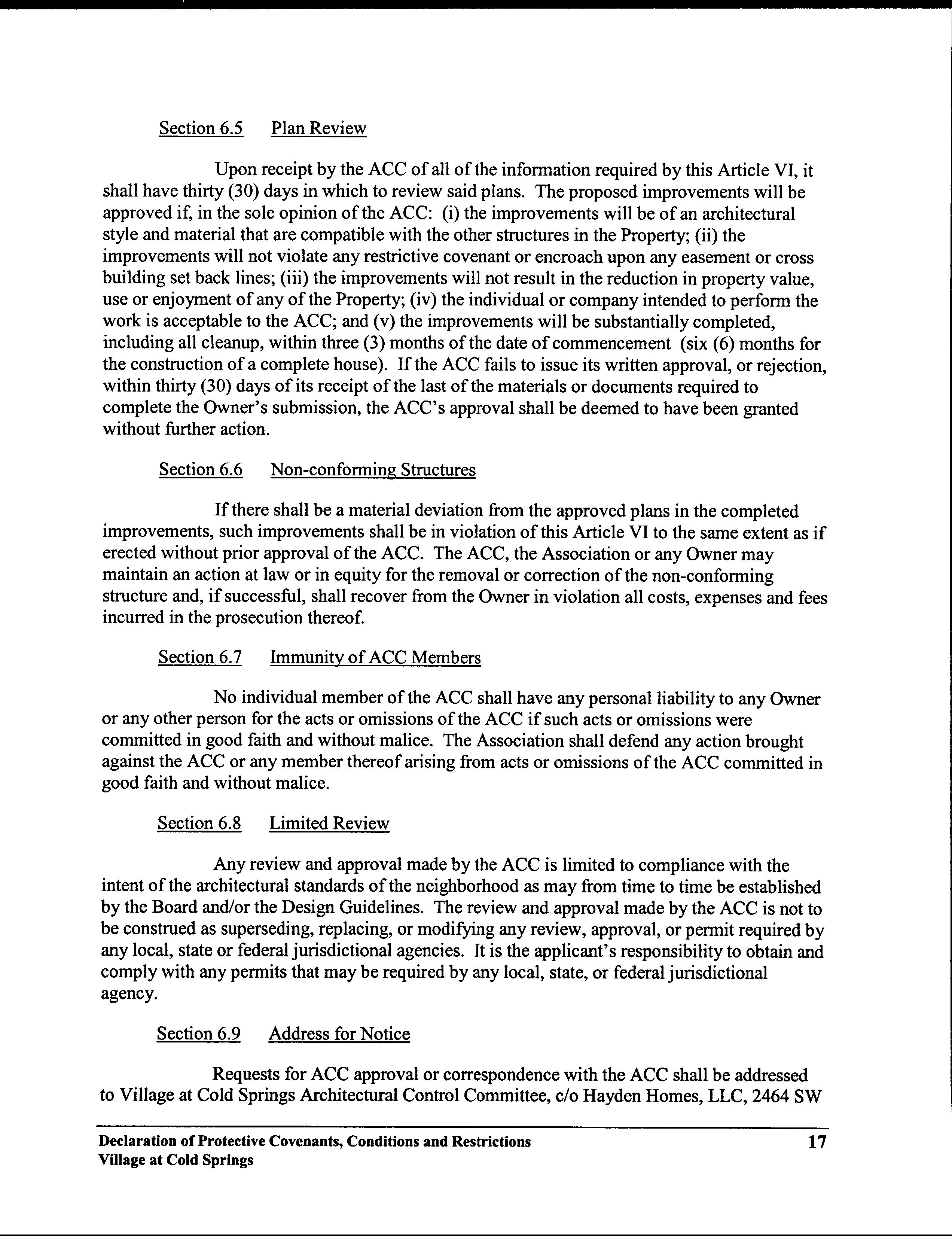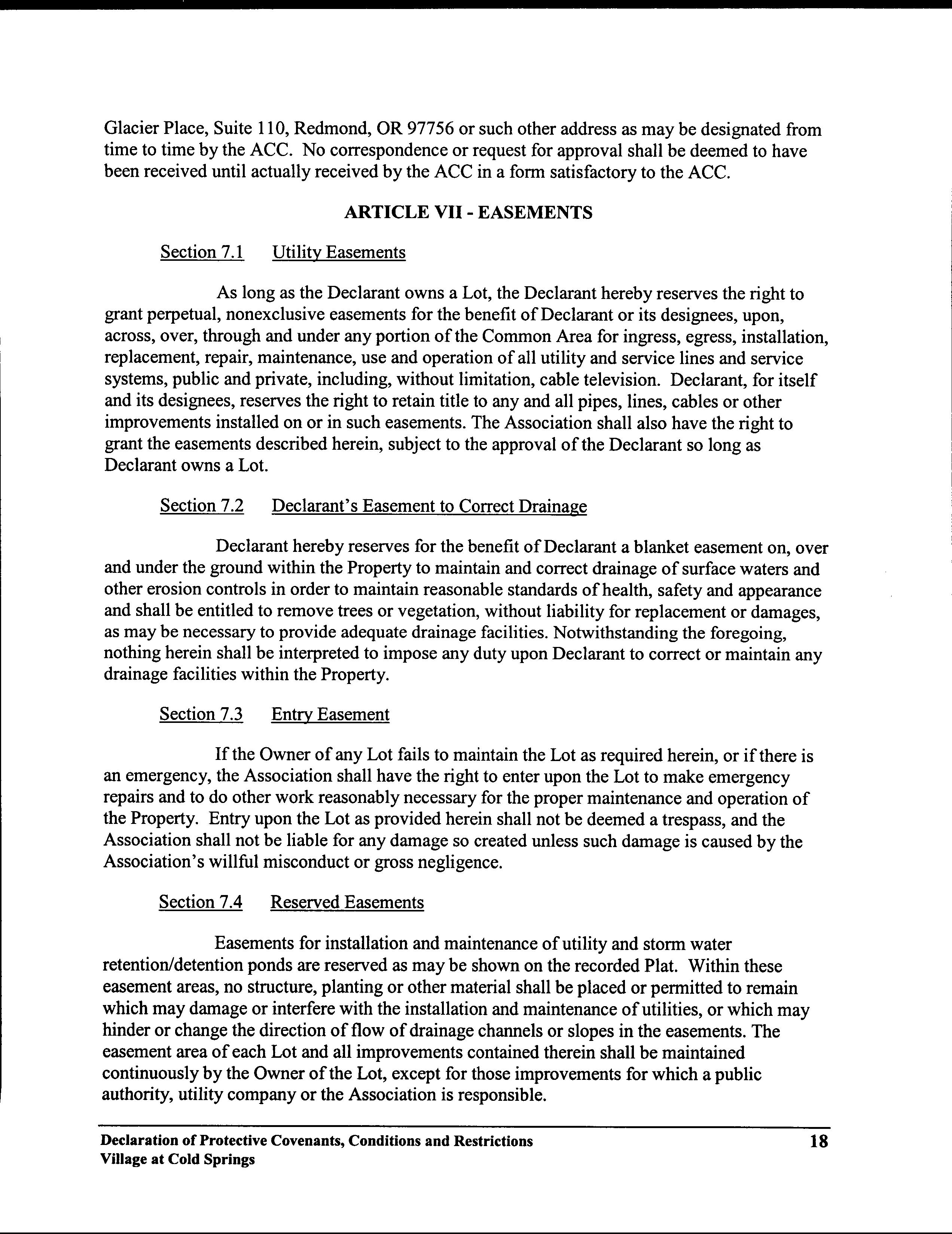 Village at Cold Springs CC&R's