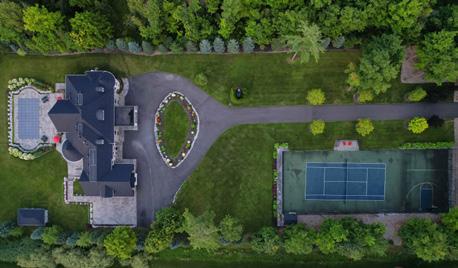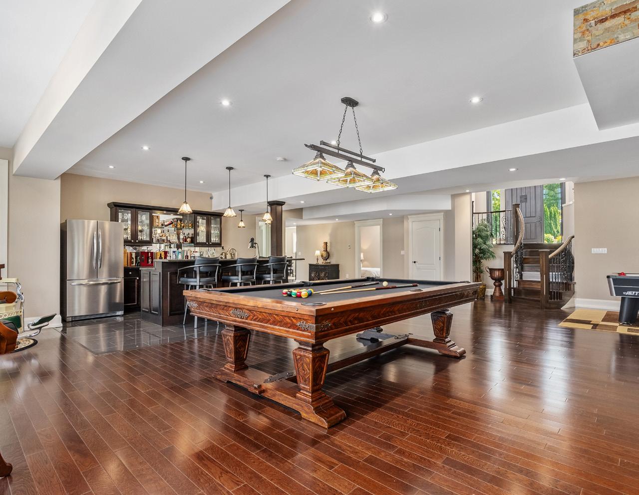 ENTERTAINMENT FINDS ITS PLACE IN THE BASEMENT, COMPLETE WITH A CUSTOM BAR, GAME AREA WITH POOL TABLE, AND A LOUNGING AREA FOR MOVIE NIGHTS. STEP OUTSIDE TO CHALLENGE A FRIEND ON THE TENNIS COURT, SHOOT SOME HOOPS, ENJOY A SWIM IN THE POOL, OR SIMPLY LOUNGE ON THE VAST STONE PATIOS.