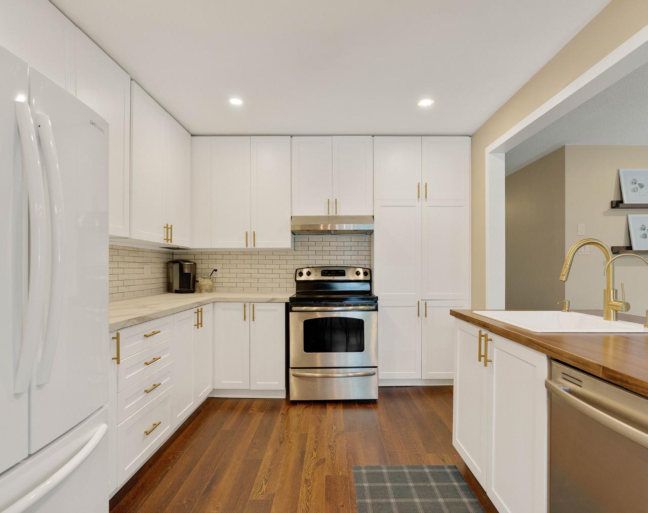 1,250 SQUARE FEET OFFERS A CLASSIC LAYOUT WITH A WELCOMING OPEN CONCEPT LIVING ROOM FEATURING AN ELECTRIC FIREPLACE ADORNED WITH A BEAUTIFUL STONE/WOOD MANTLE, ALONG WITH A COZY DINETTE/EATING AREA AND A NEWLY RENOVATED KITCHEN.