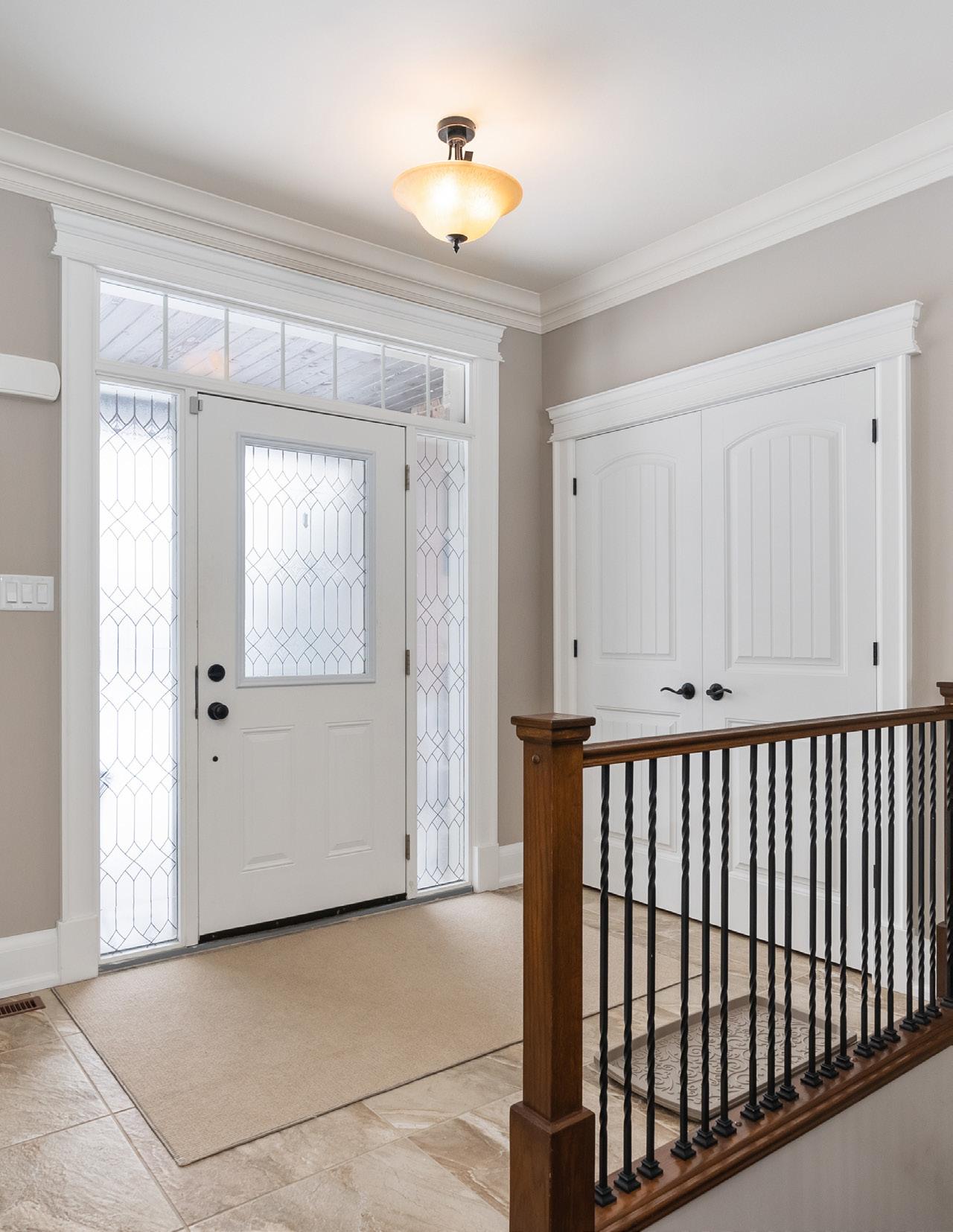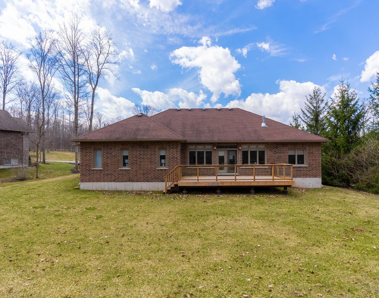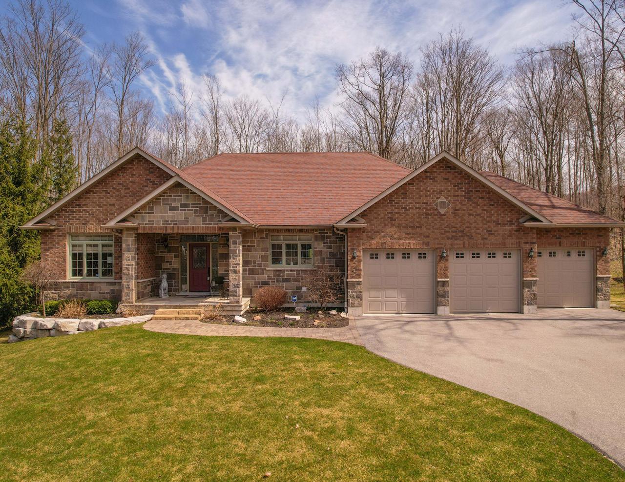 OUTSIDE, THE TRIPLE-CAR GARAGE IS INSULATED AND DRYWALLED, WHILE THE PAVED DRIVEWAY ENSURES AMPLE PARKING. THE BEAUTIFULLY LANDSCAPED EXTERIOR FEATURES A STONE PAVER WALKWAY, ARMOUR STONE ACCENTS, AND GARDENS ACCENTUATED BY SOFFIT LIGHTING AND A GAS LINE FOR A BBQ ON THE REAR DECK. WITH WALKING TRAILS NEARBY AND NO NEIGHBOURS ON ONE SIDE, THIS HOME OFFERS BOTH PRIVACY AND ACCESSIBILITY TO NATURE.