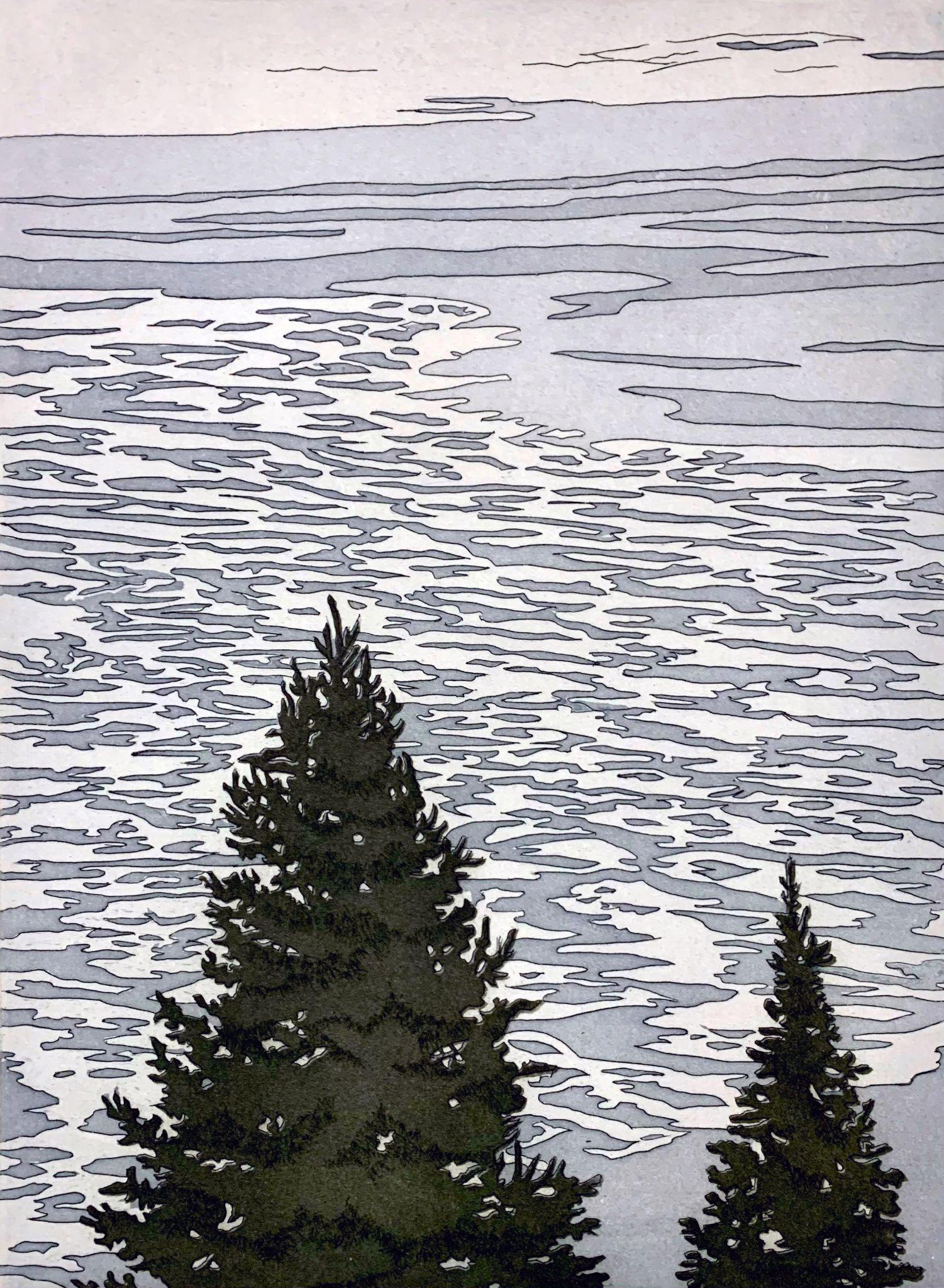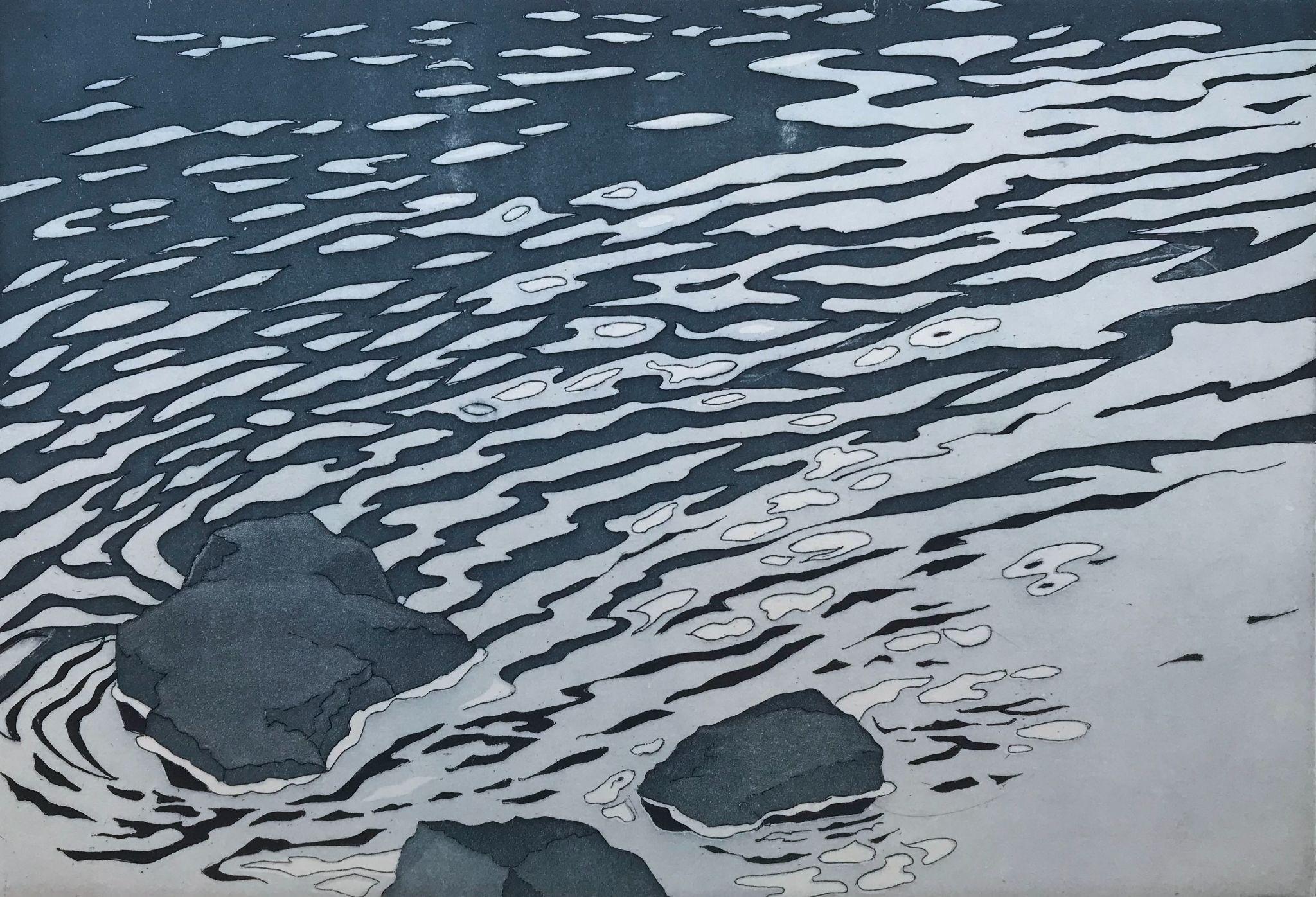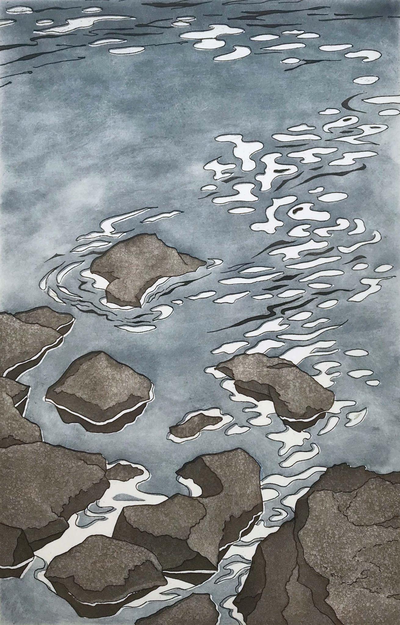 "I have always had an affinity for water in the landscape, working with such themes such as water plants, rain clouds, lakes and streams. The Minnesota Boundary Waters, Lake Superior, and Scotland inspire the imagery in my work. Lake Superior, in particular, is a constant source of inspiration with its changing light and colors, wave patterns, squalls and clouds. Rocks along the shore offer varied shapes and textures to complement the moving water. While presenting aspects of the natural world, I want to pay homage to Nature as a driving force and the ultimate source of beauty and balance in our world."