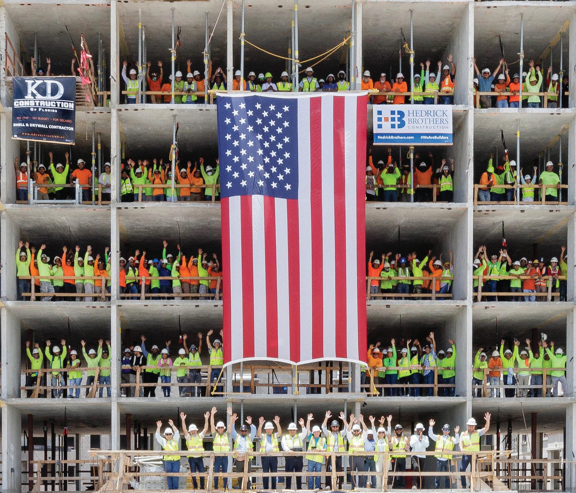 The Hedrick Brothers Space Coast team is developing future construction professionals and craftsmen by providing hands-on and classroom training to Cocoa High School students in Brevard County. As a thank you, the students from the Spring 2021 class presented our team with a handmade wooden USA flag. As proud members of the Brevard County community, our new flag hangs at the entrance to our Melbourne office for everyone to enjoy!