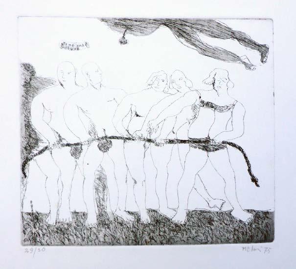 ARTISTA: Gino Meloni TITOLO: Tiro alla fune, 1975 TECNICA: Acquaforte DIMENSIONI: lastra 22 x 24,5 cm, foglio 49,5 x 35 cm COPIA: 29/30 Serie Galleria delle Ore BASE D’ASTA: 100,00 Euro 54