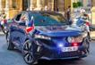 Renault Rafale som självklart försetts med attiraljer som flagghållare för trikoloren. Jungfruturen ägde rum längs paradgatan ChampsÉlysées och därmed fortsätter en tradition som började redan 1920. Då levererades den första presidentbilen från Renault och det var en 40CV som användes av såväl